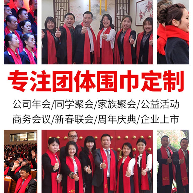 恒源祥羊毛围巾女秋冬保暖百搭大红围巾男定制LOGO围脖纯色中国红
