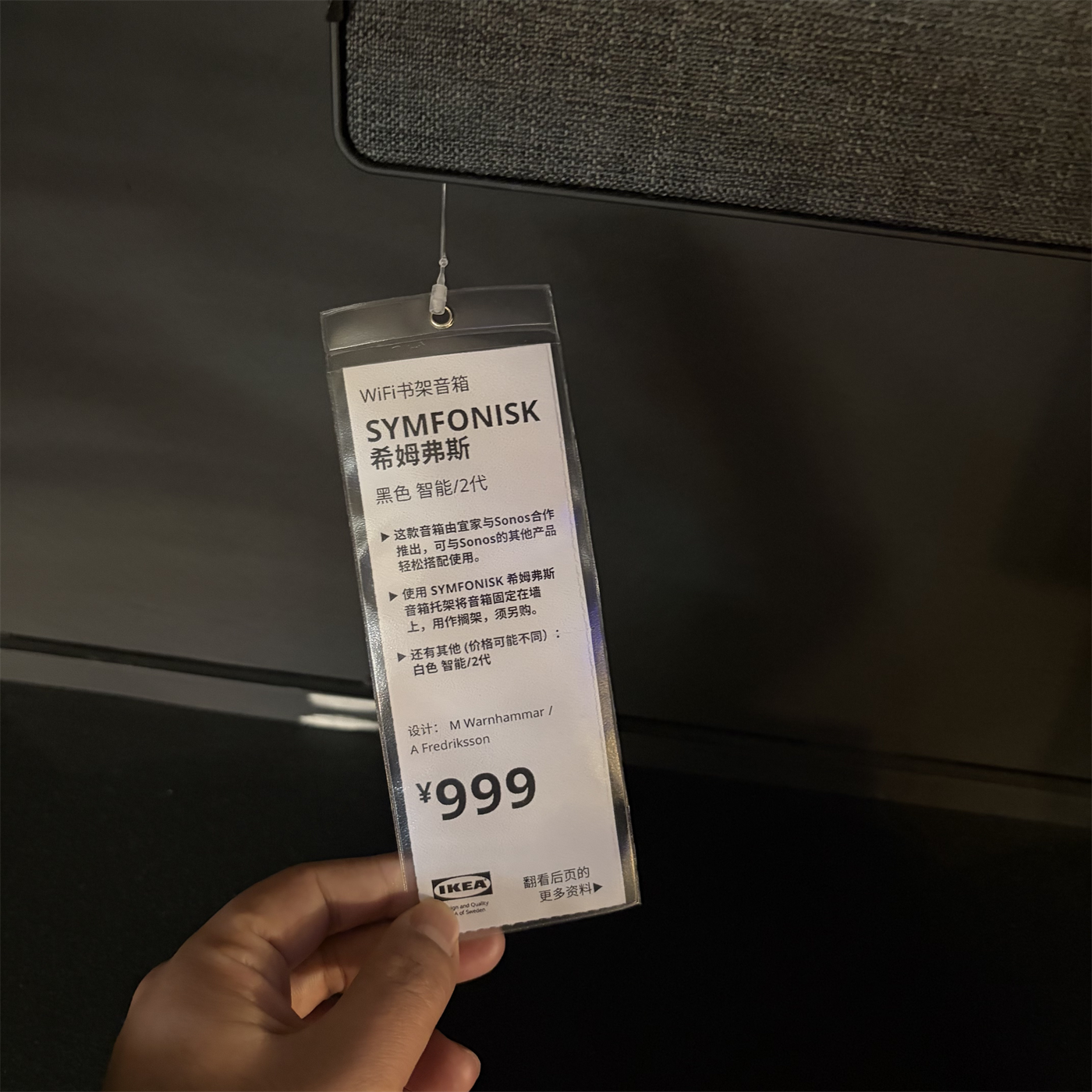 IKEA宜家 SYMFONISK 希姆弗斯 WiFi书架音箱白色智能/2代