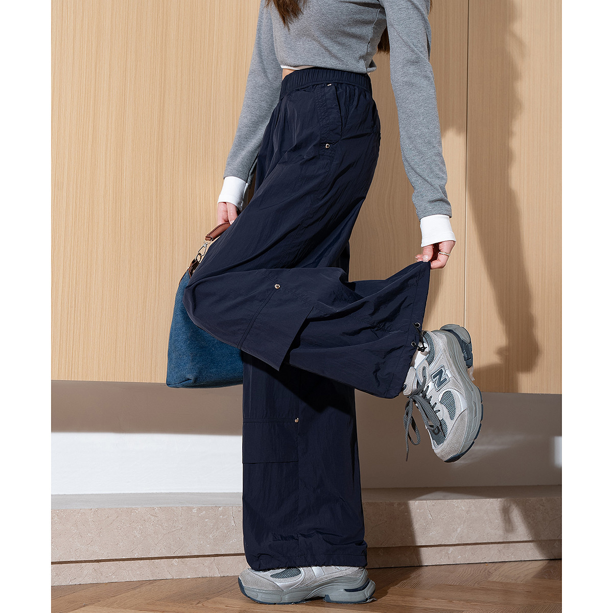 唐狮春季新款女休闲裤宽松设计感工装裤直筒阔腿长裤束脚裤