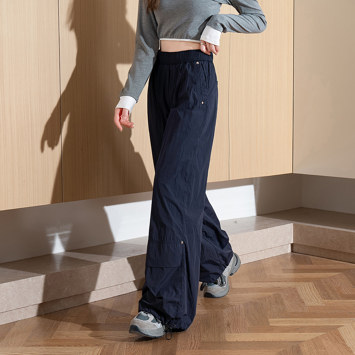 斯凯奇闪穿裤|伞兵裤女装柔软保暖裤春季运动裤工装裤长裤直筒裤