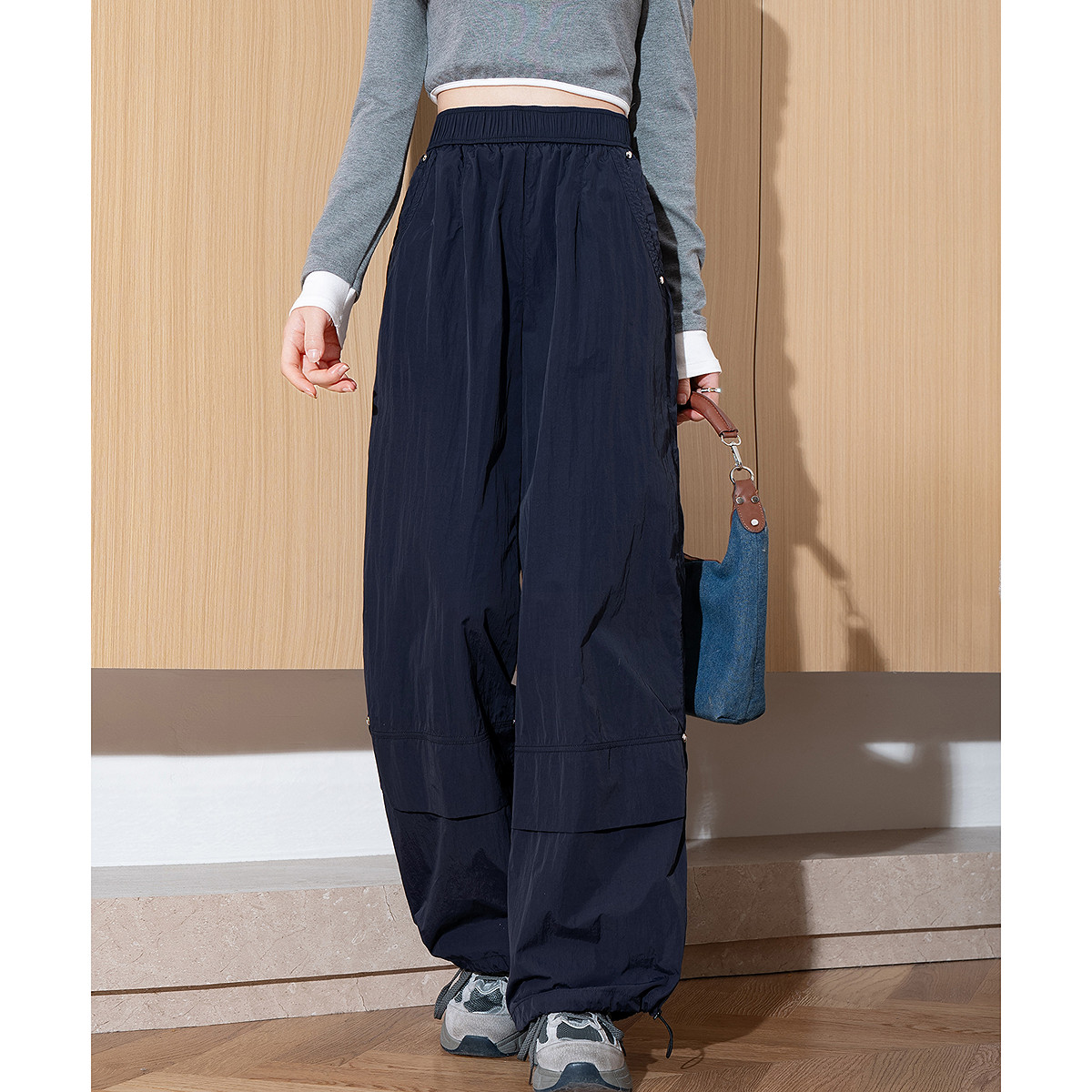 唐狮DESSO秋冬新款糯米裤高腰垂感宽松加绒直筒阔腿裤5