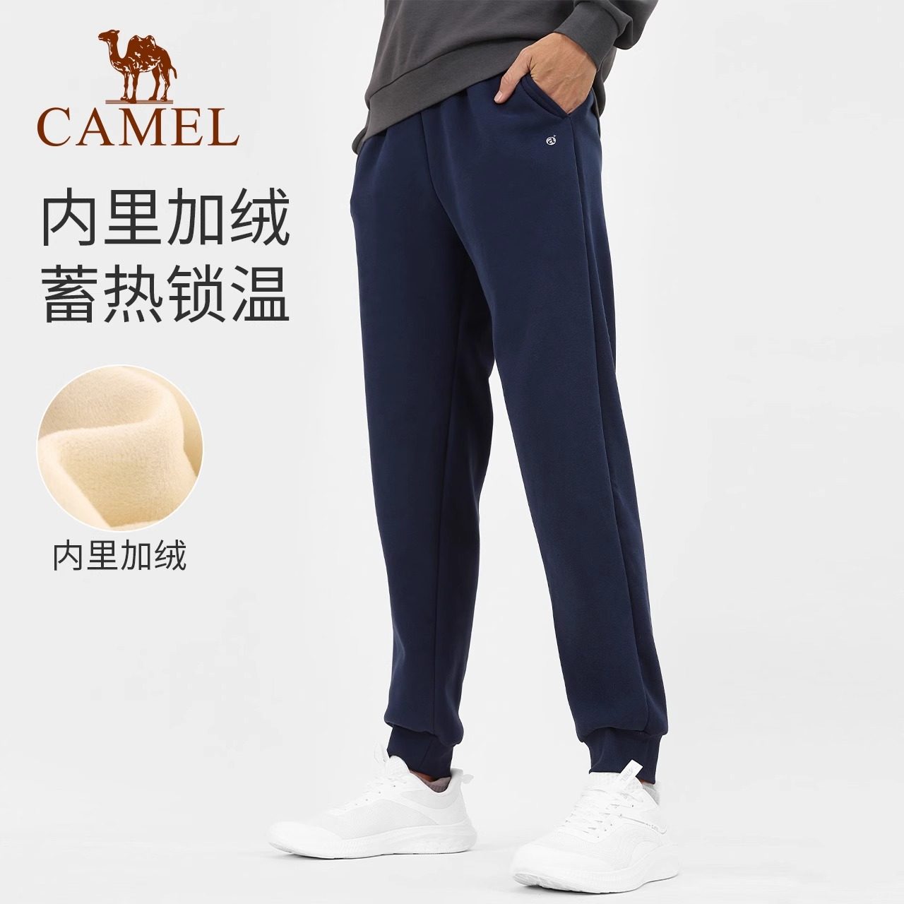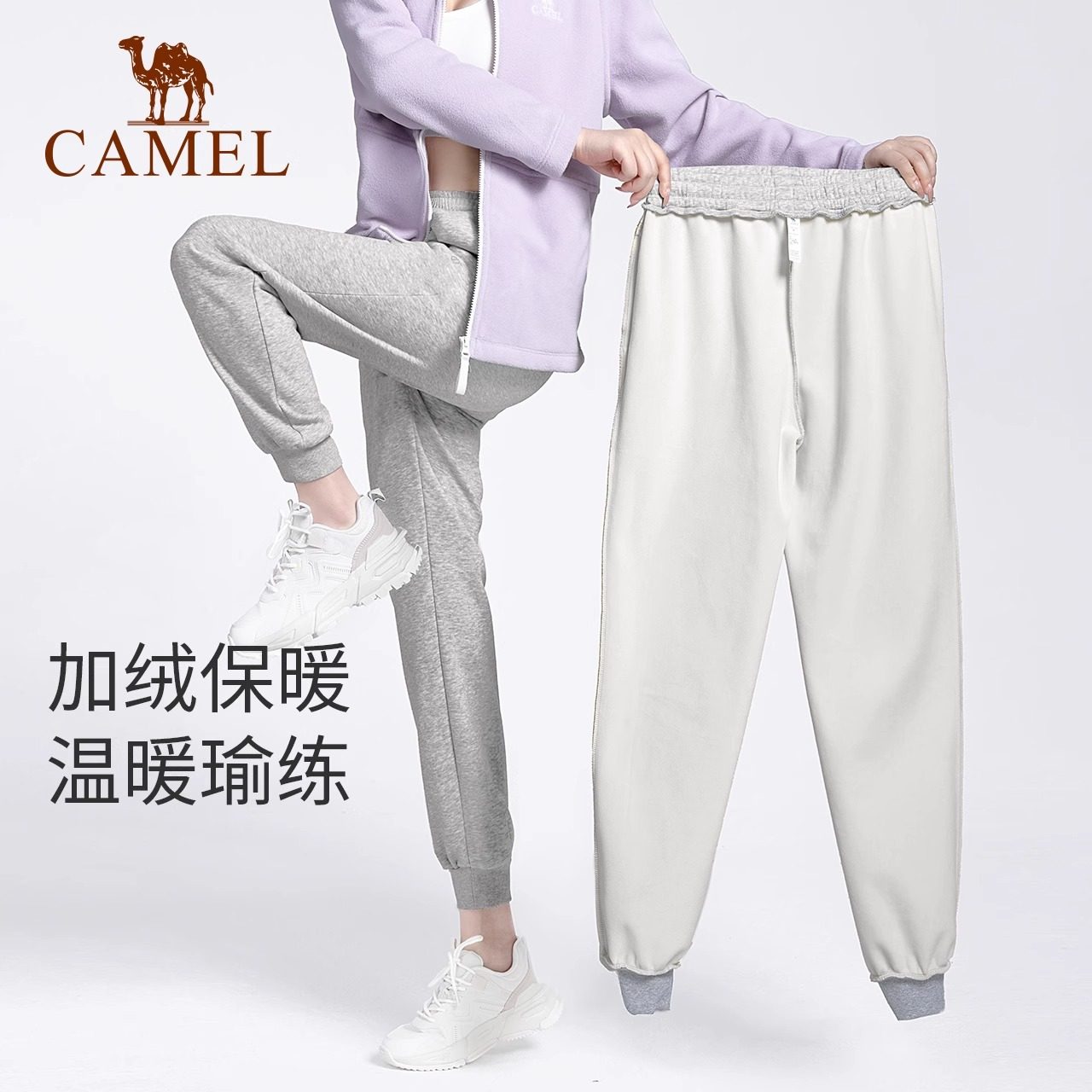 骆驼秋冬户外休闲长裤加绒加厚运动裤女宽松瑜伽裤束脚裤男跑步裤