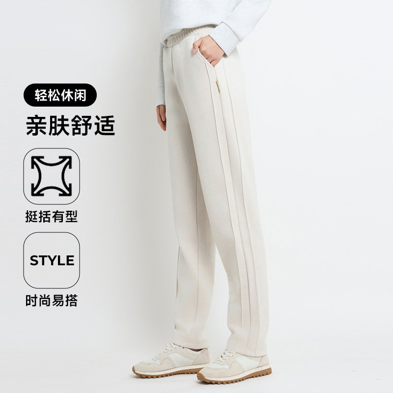 杨幂同款SIINSIIN2025新款白色加绒直筒裤女冬季厚显瘦运动小个子