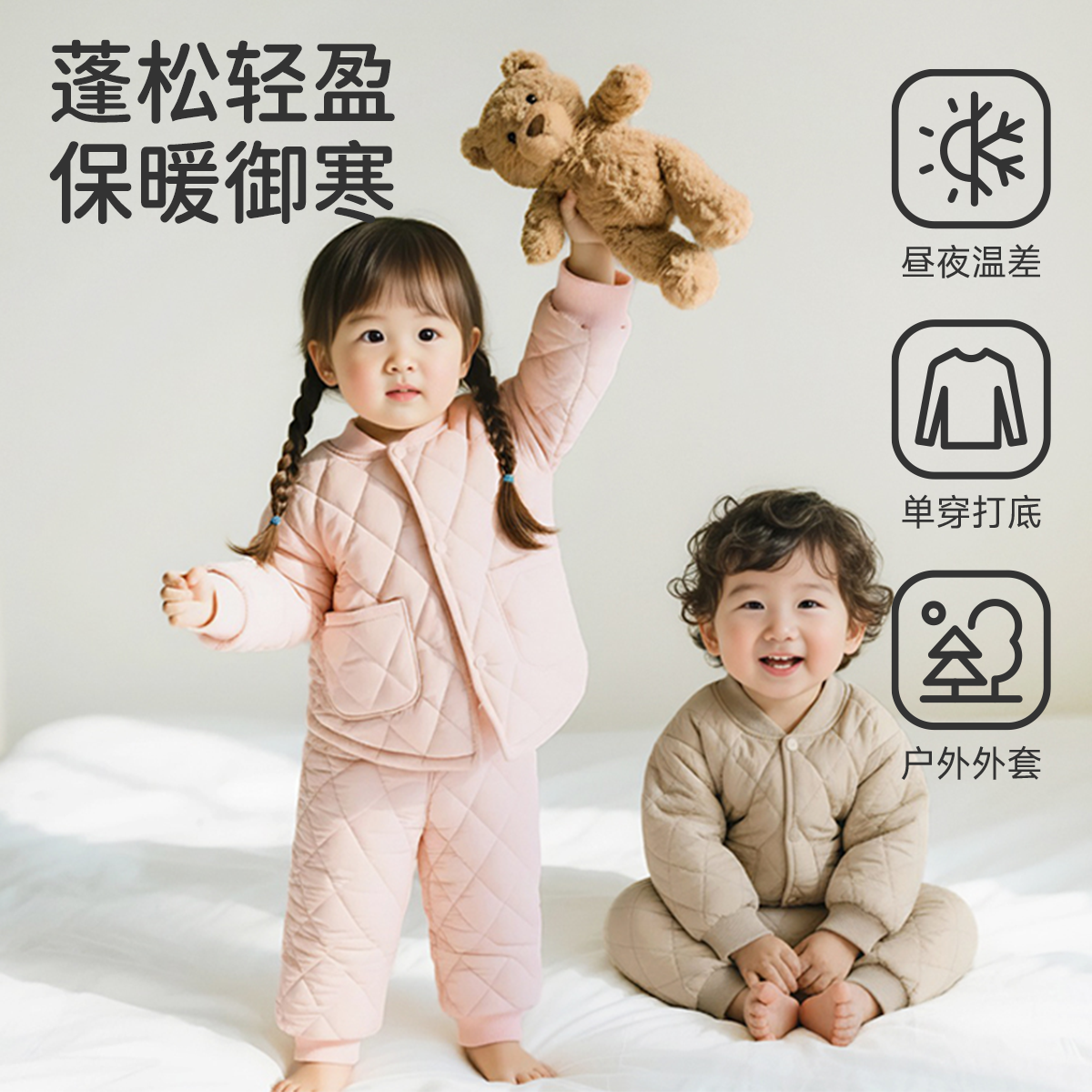 婧麒婴儿棉服套装宝宝棉衣冬季夹棉分体儿童加厚棉袄男童女童冬装