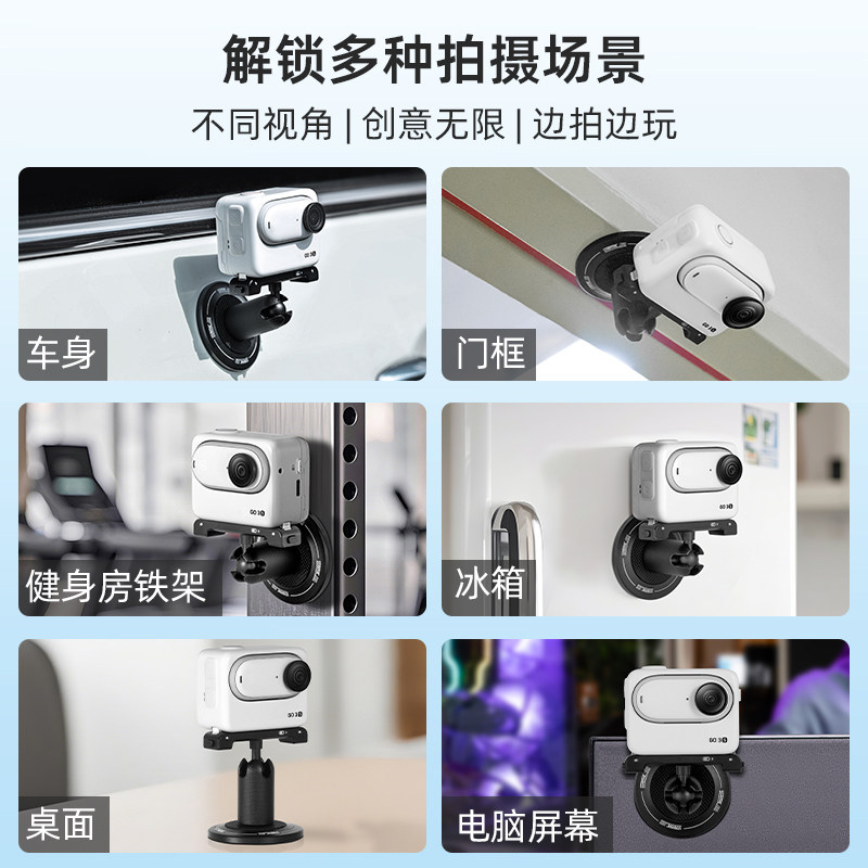 STARTRC斯达飞影石insta360 GO 3S磁吸底座电动真空吸盘固定支架go3拇指运动相机汽车吸盘桌面固定架配件