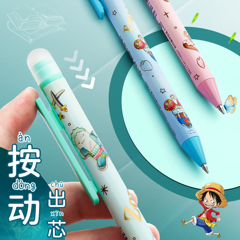 晨光热可擦笔三年级航海王甜品派对海贼王可动漫卡通可擦水笔0.5黑色子弹头晶蓝色可擦笔