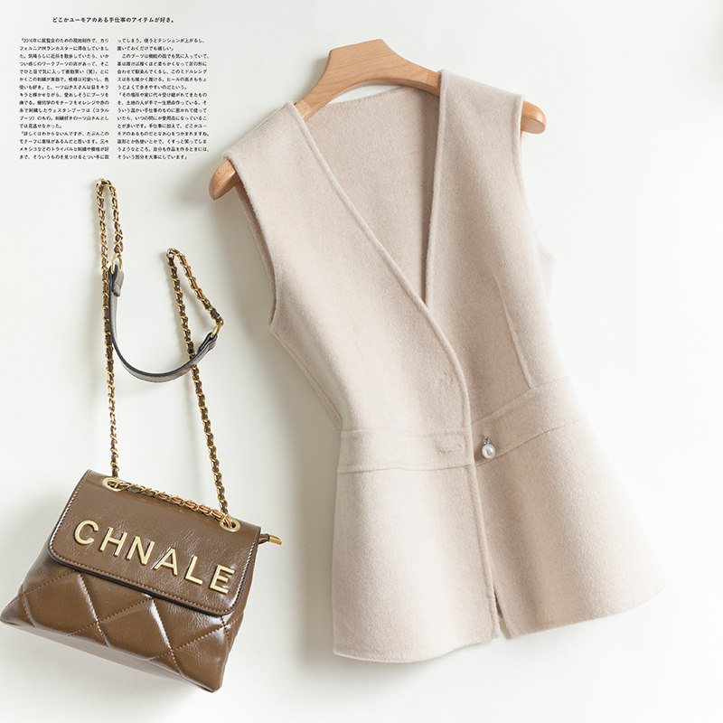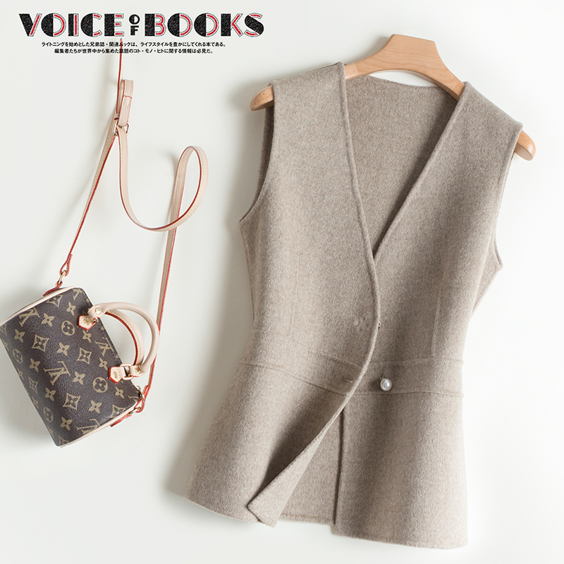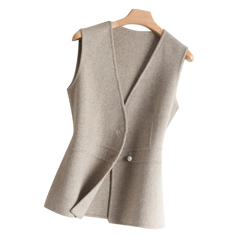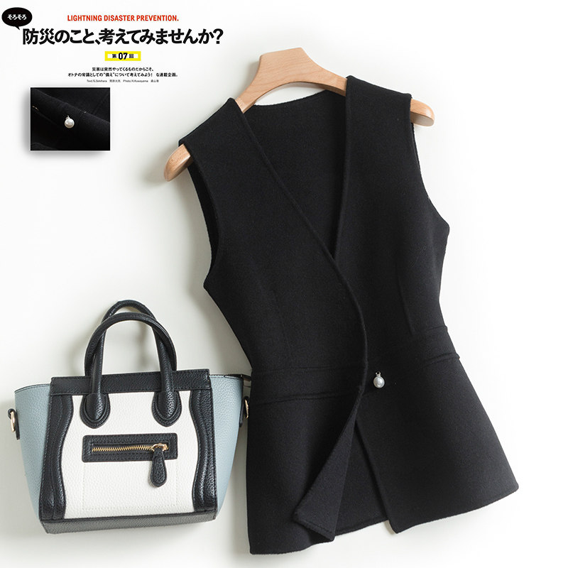 双面羊绒大衣女短款马甲秋冬新款修身毛呢外套内搭坎肩双面呢马夹
