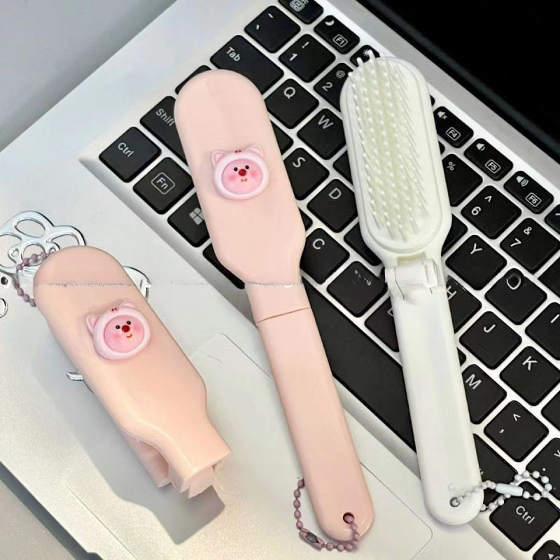 便携折叠猪鬃毛梳鬓角梳女士化妆盘发卷发蓬松造型美发打毛小梳子