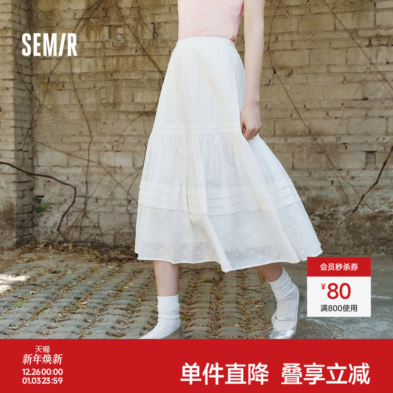 森马半身裙女松紧腰A字裙气质夏季2025新款拼接蕾丝波点长裙优雅