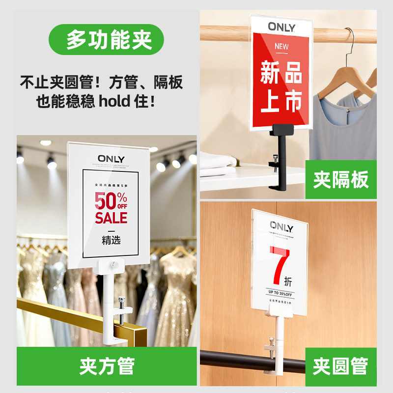 服装店标价牌折扣牌特价贴亚克力价格展示牌金属中岛特价牌POP广告夹子商场超市货架促销活动牌KT板夹sale牌