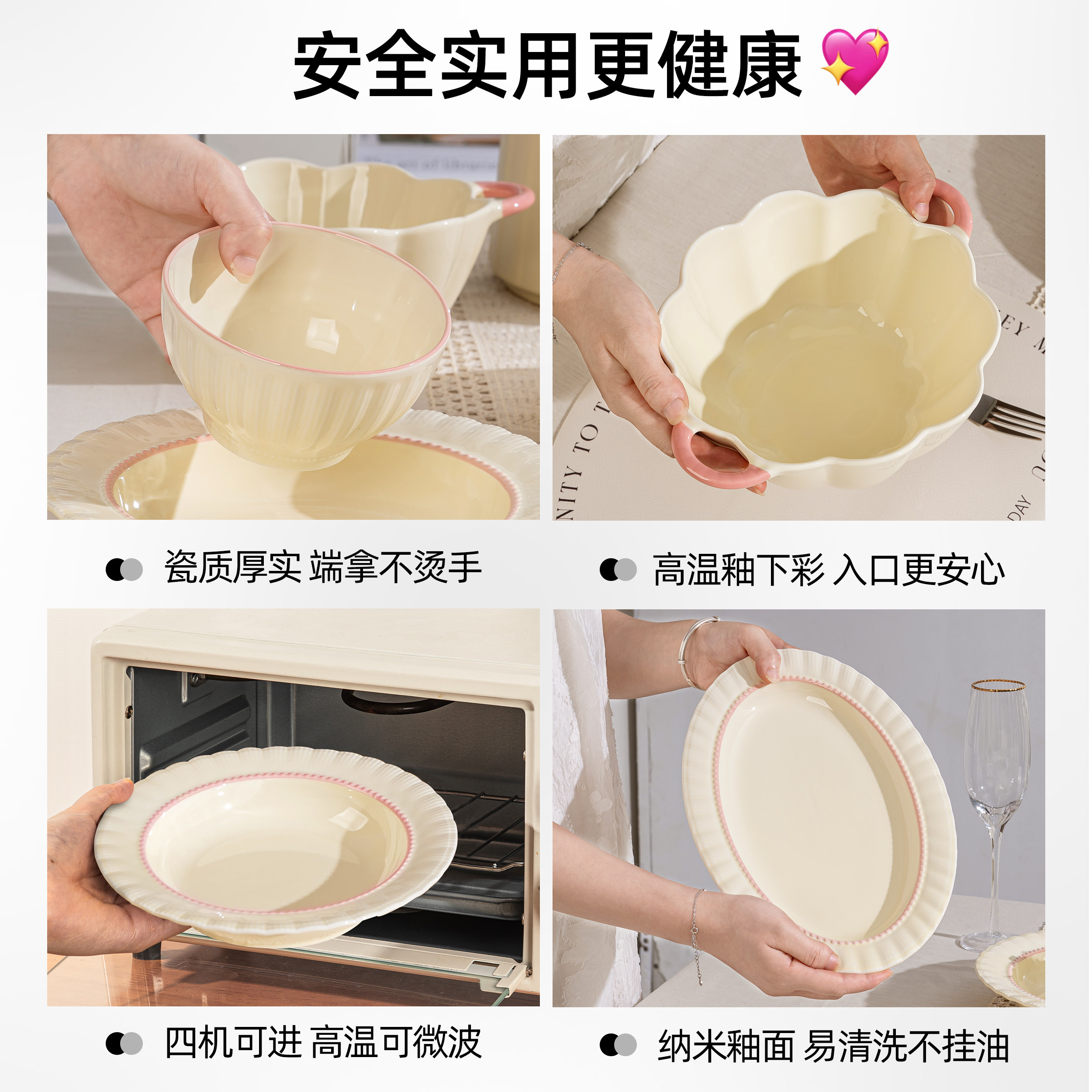 奶油风陶瓷碗家用卡通菜盘子可爱米饭碗汤碗釉下彩儿童餐具耐高温