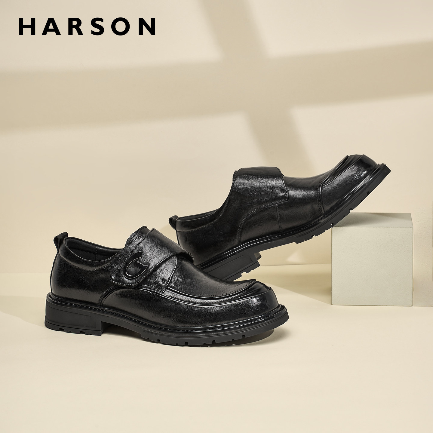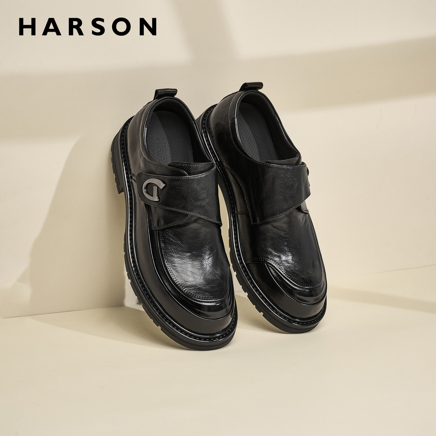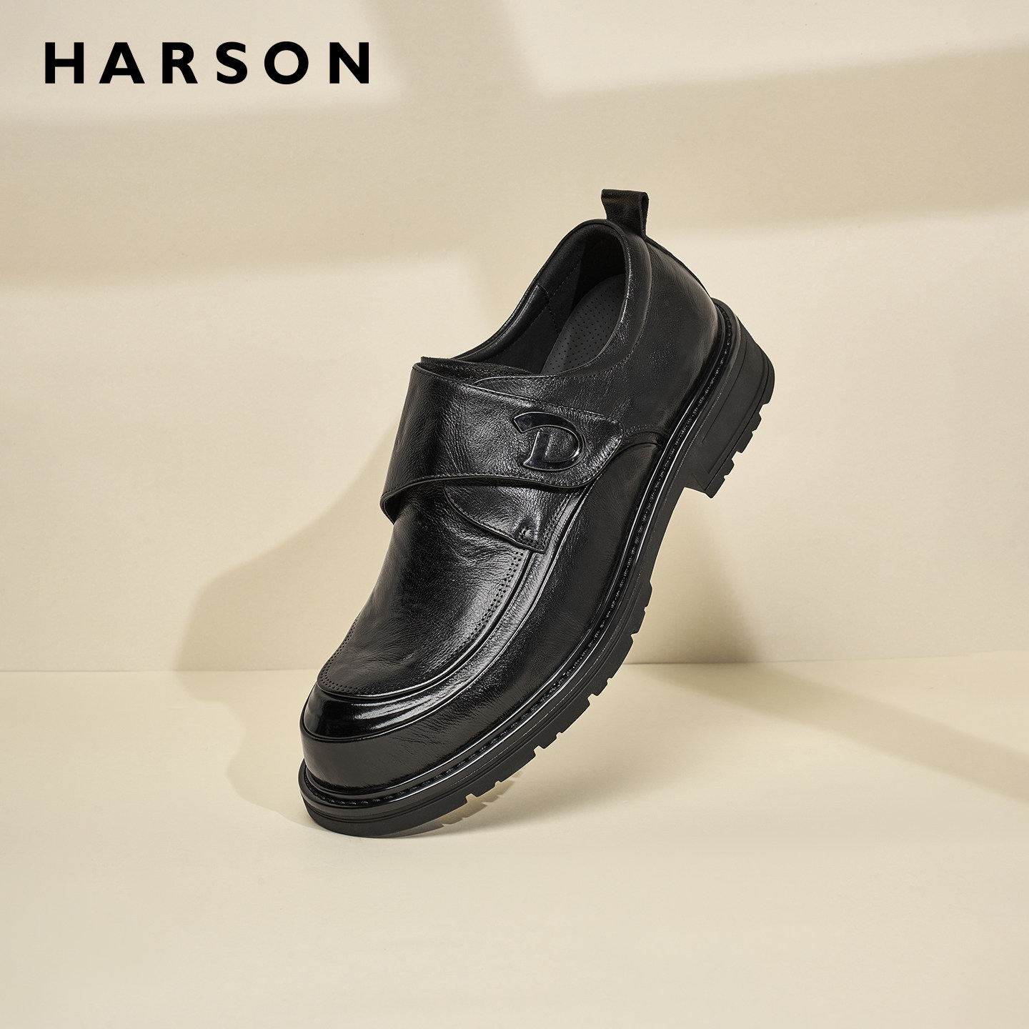 哈森男鞋秋季新款大头厚底德比鞋男士商务休闲皮鞋男结婚增高皮鞋