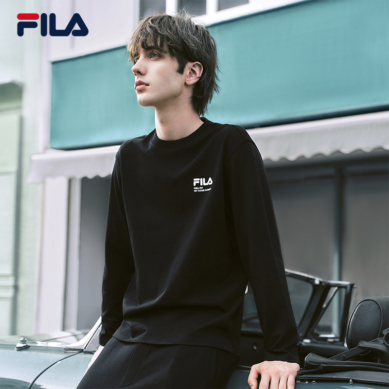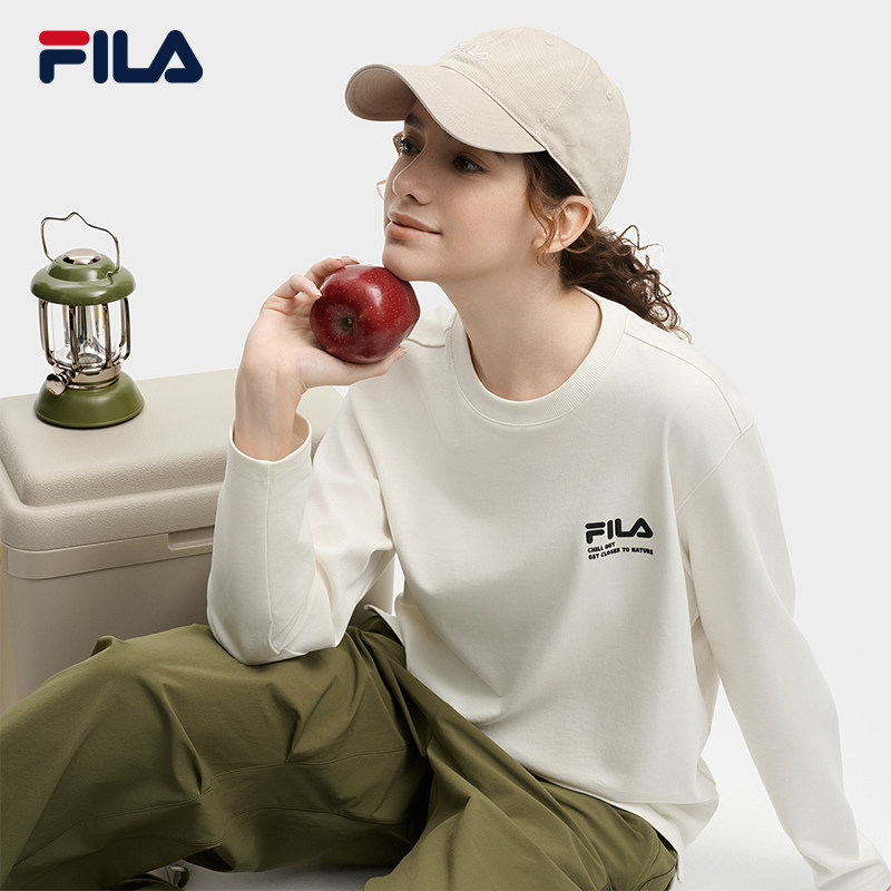 FILA斐乐针织长袖上衣女2025秋新款休闲纯棉宽松情侣男女同款T恤