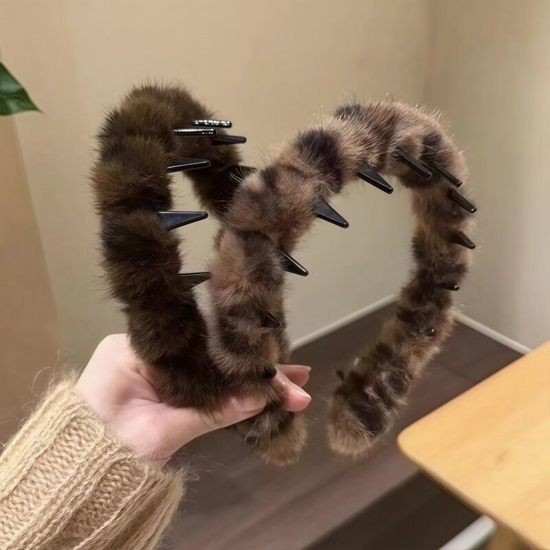 秋冬气质豹纹毛绒发箍女带齿洗脸压发头箍高颅顶防滑碎发整理发卡