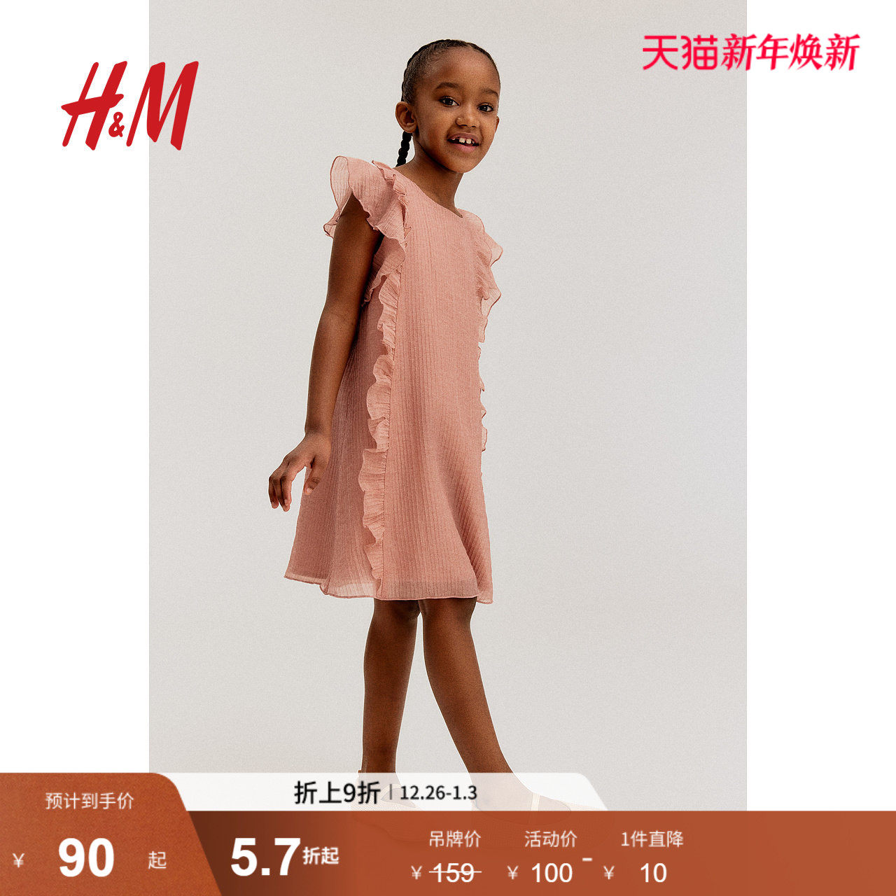 HM童装儿童女童裙子2025年冬新款时尚圆领褶边装饰连衣裙1275398