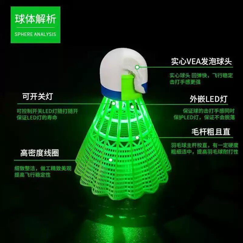 夜光羽毛球塑料防风带灯户外训练室外尼龙夜间荧光发光鹅毛球套装
