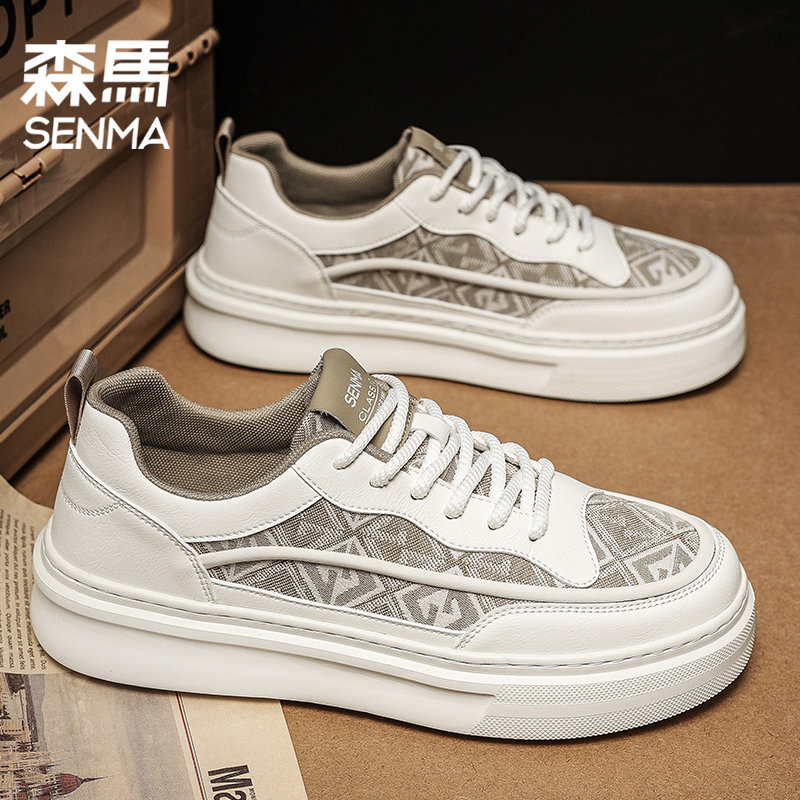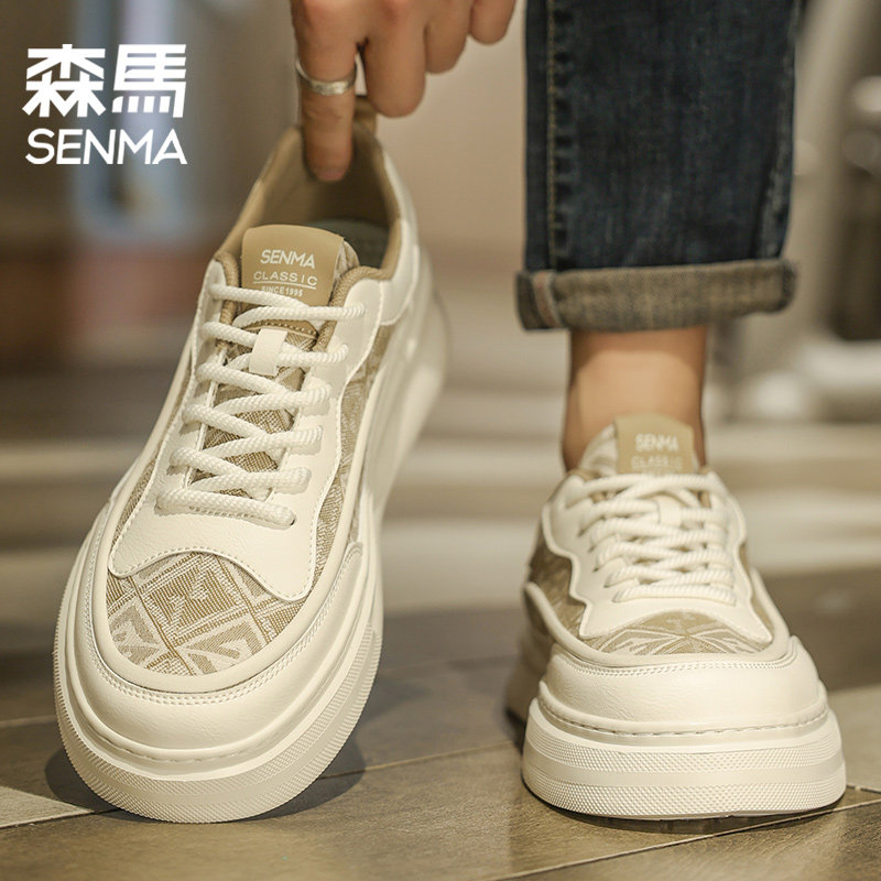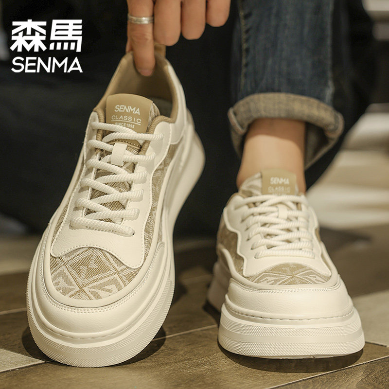 SENMA/森马男鞋2025新款港风印花透气板鞋厚底帆布休闲运动鞋优享