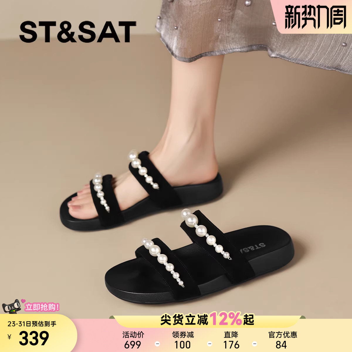 星期六露趾拖鞋女外穿2026新款夏季一字拖平底凉拖鞋休闲沙滩凉鞋