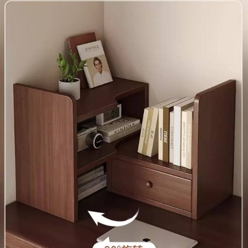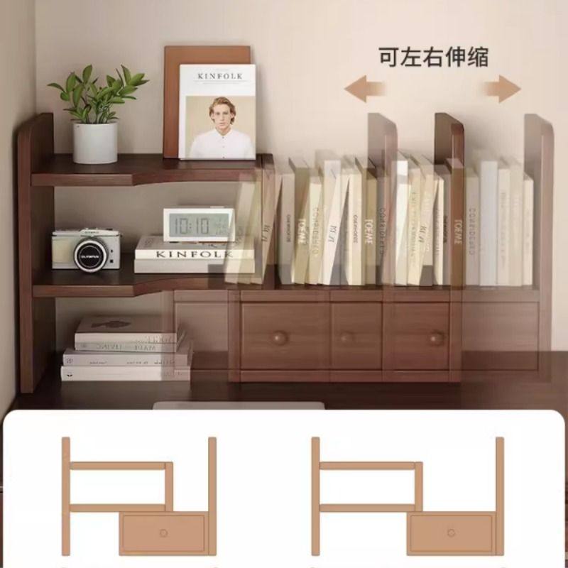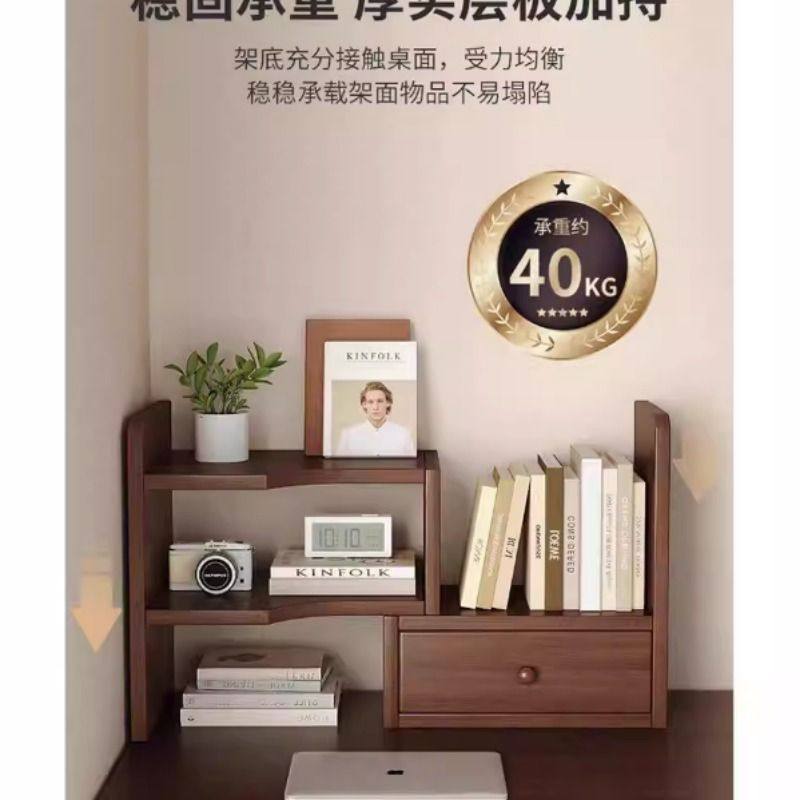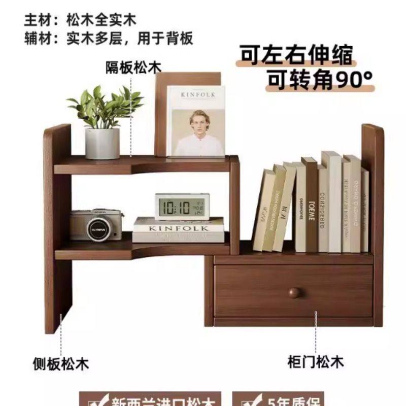 全实木桌面书架桌上置物架办公室收纳改造神器书桌分层伸缩小书柜