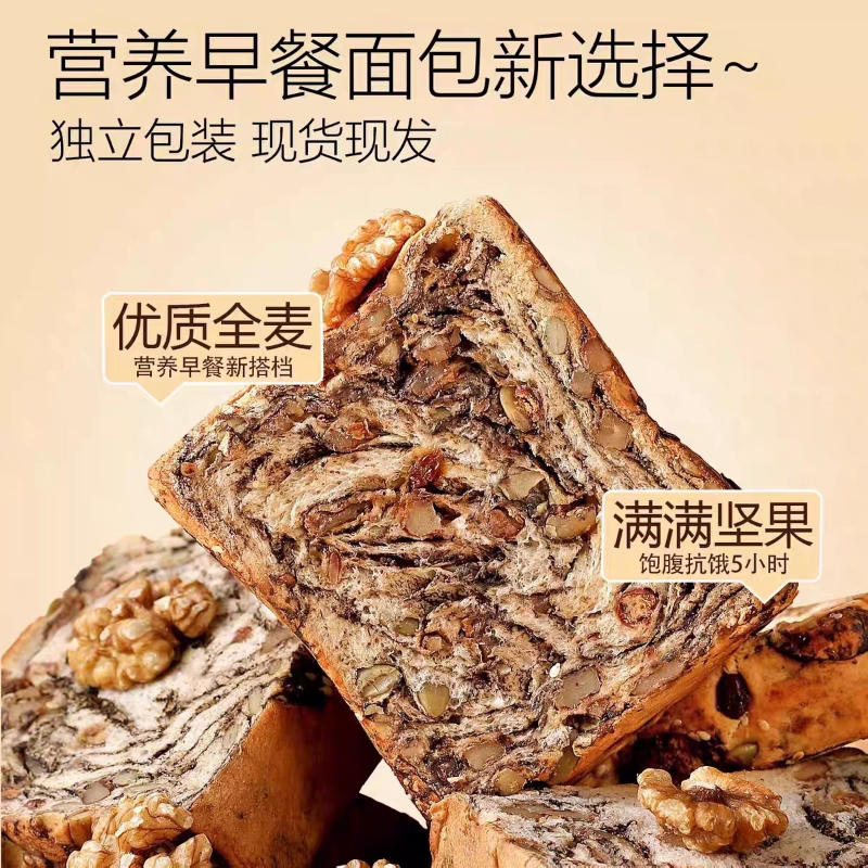 全麦面包坚果厚切吐司减专用食品脂学生营养早餐整箱糕点年货节