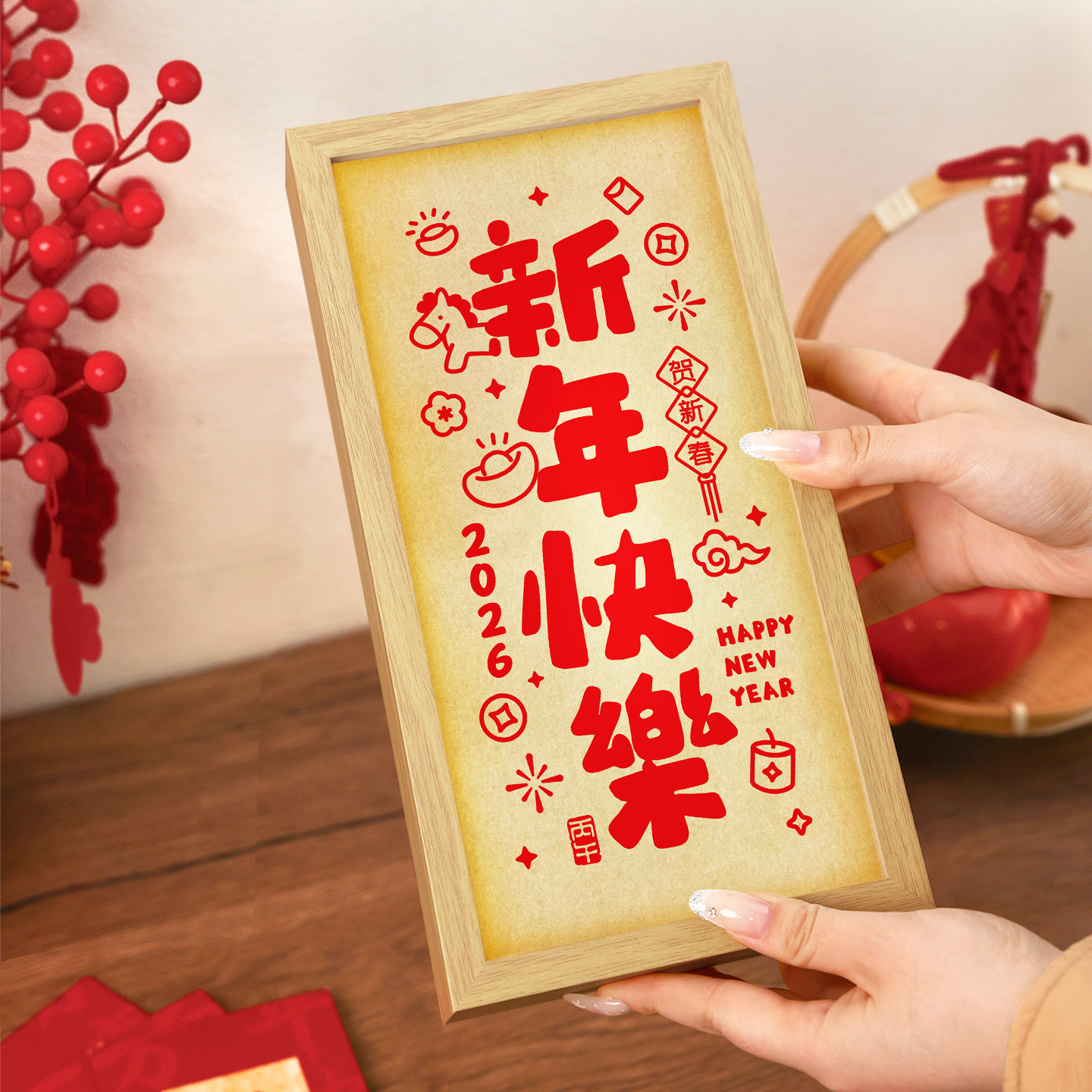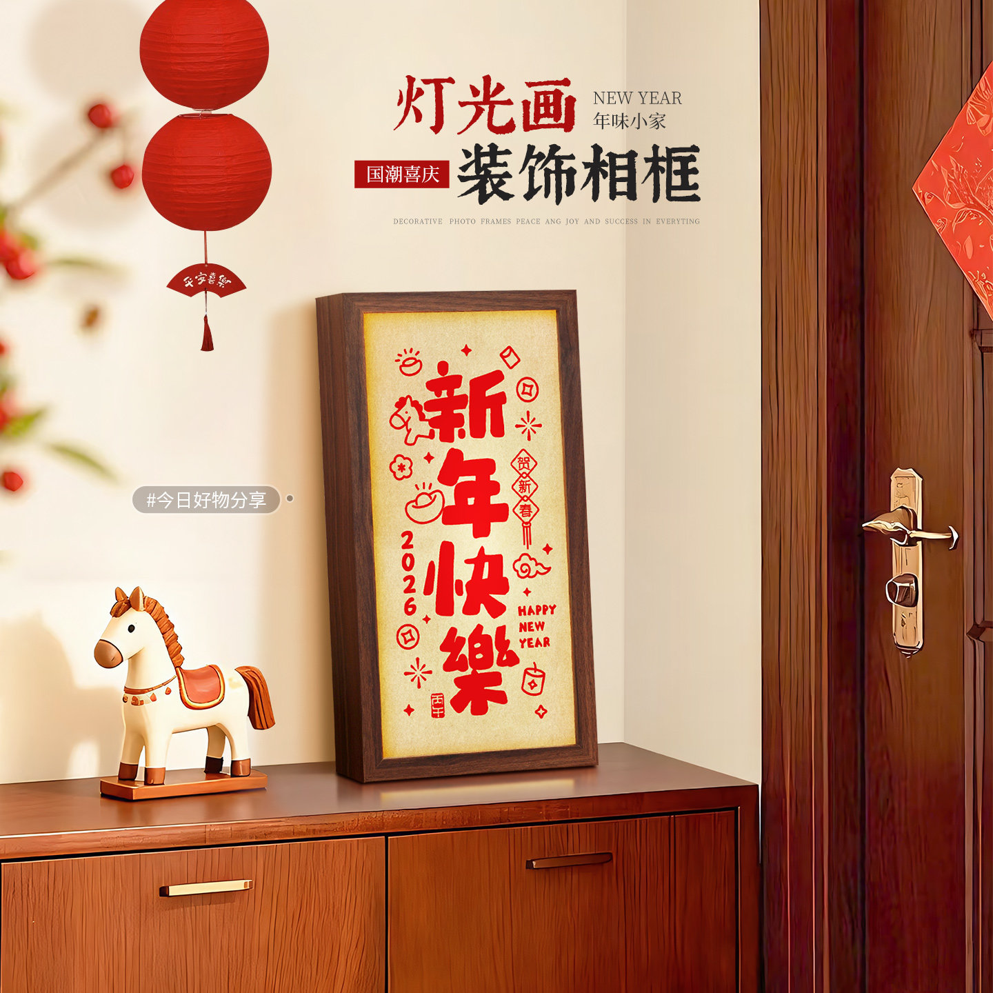 新年快乐喜庆灯光画相框高级感创意摆台发光夜灯卧室客厅装饰摆件