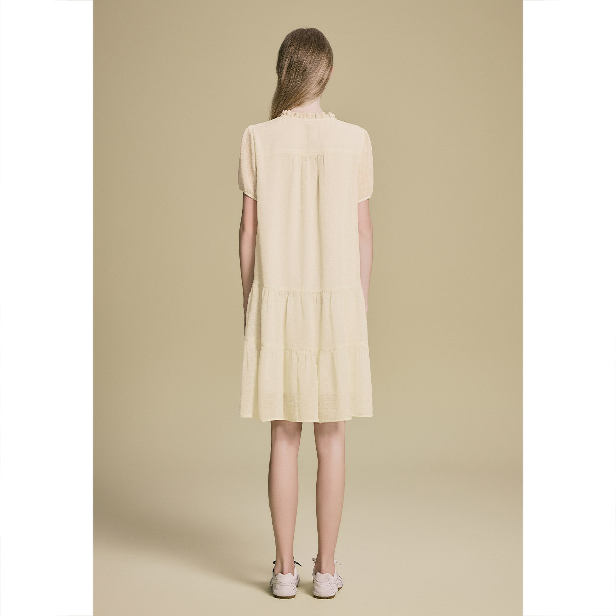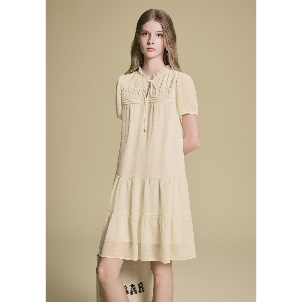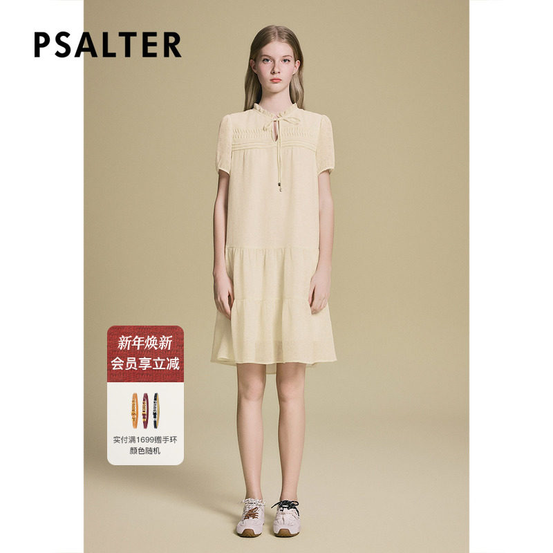 诗篇专选艺术褶花边领压花盐缩立体云朵娃娃裙2025夏季新款