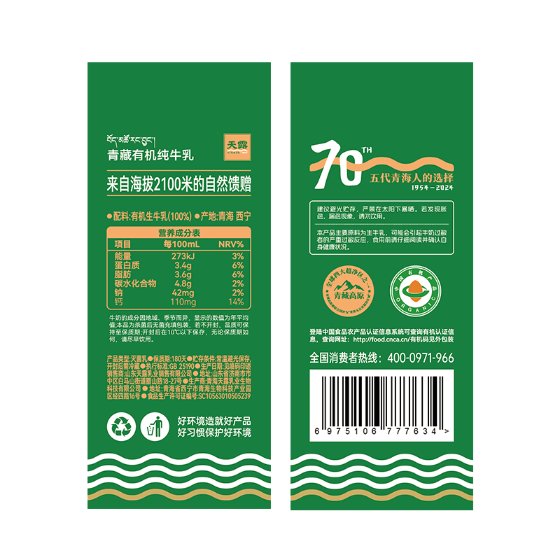天露有机纯牛奶全脂牛奶儿童牛奶学生奶整箱囤货200ml*10盒营养奶