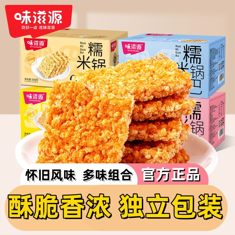 糯米锅巴零食500g蟹黄味休闲解馋网红小吃批发好吃饼干蛋黄整箱