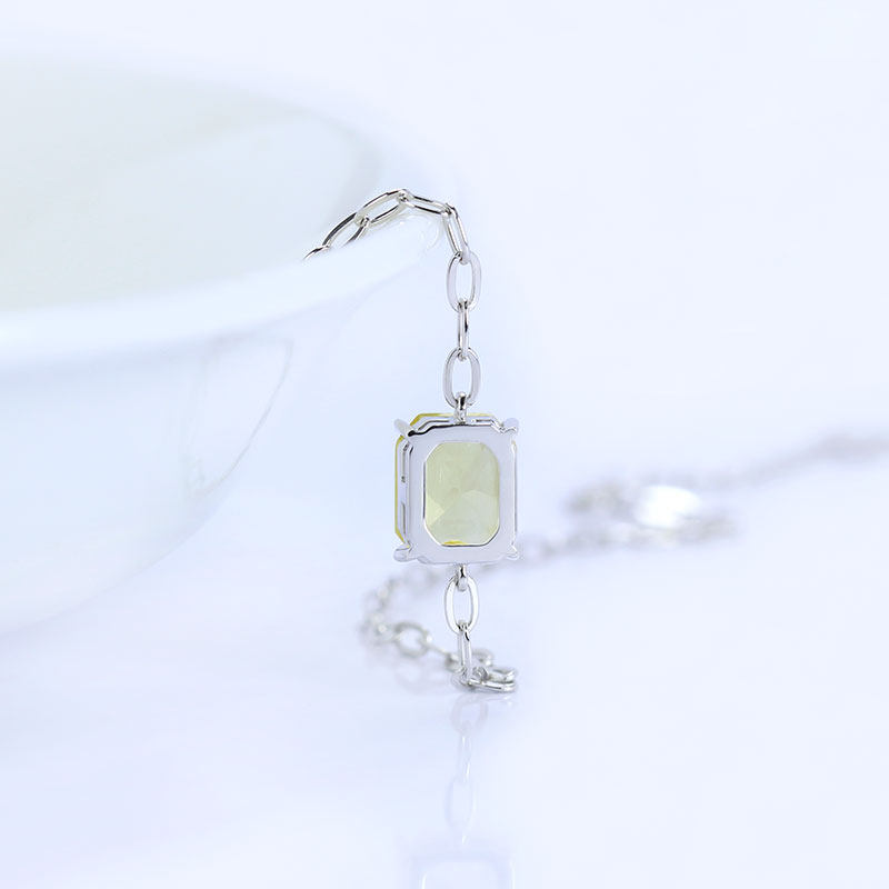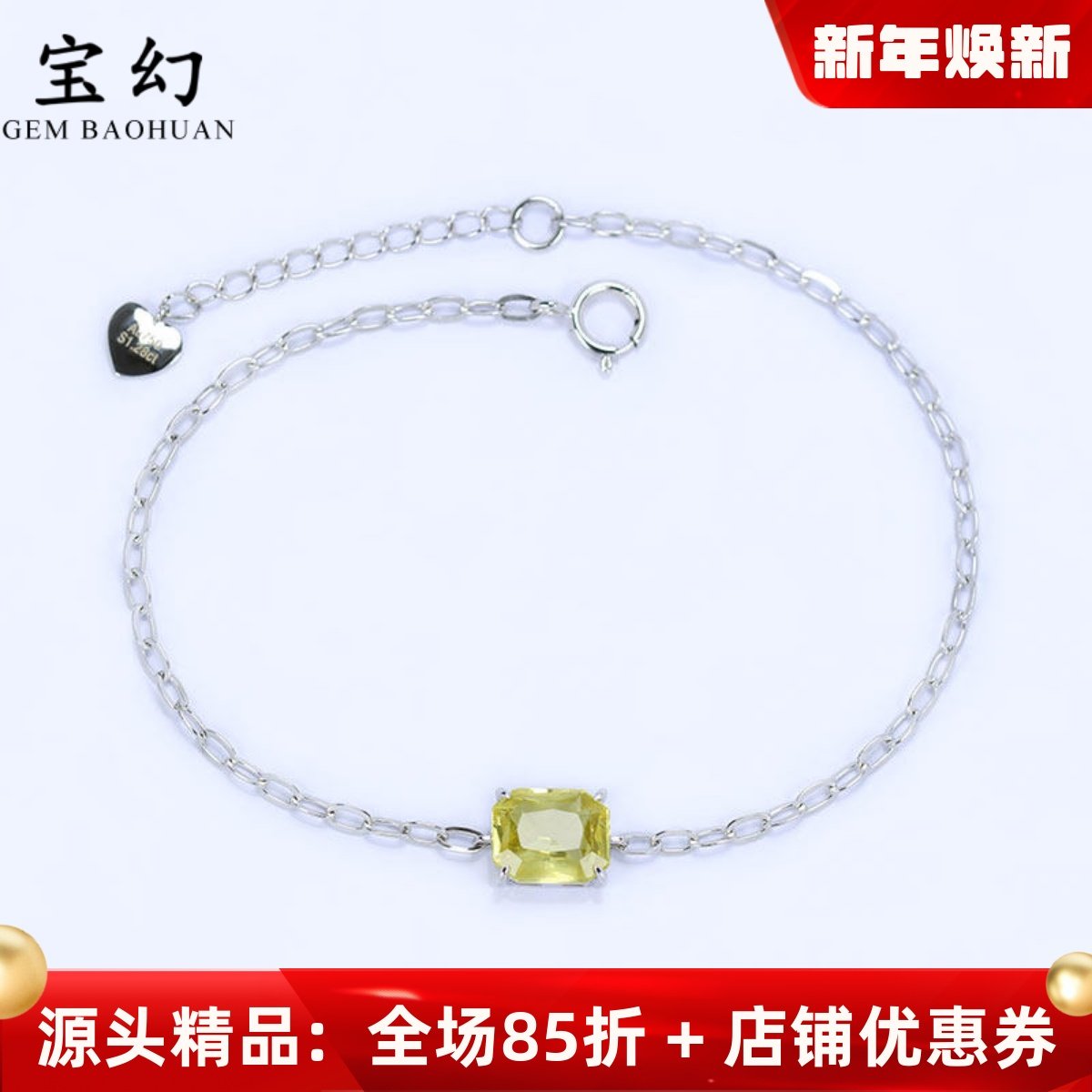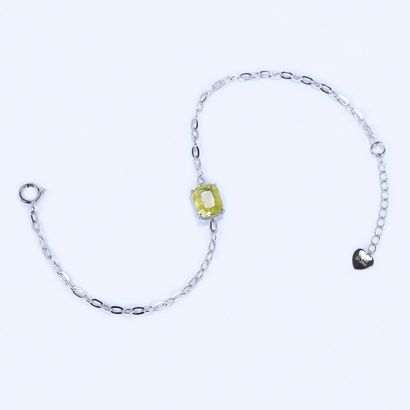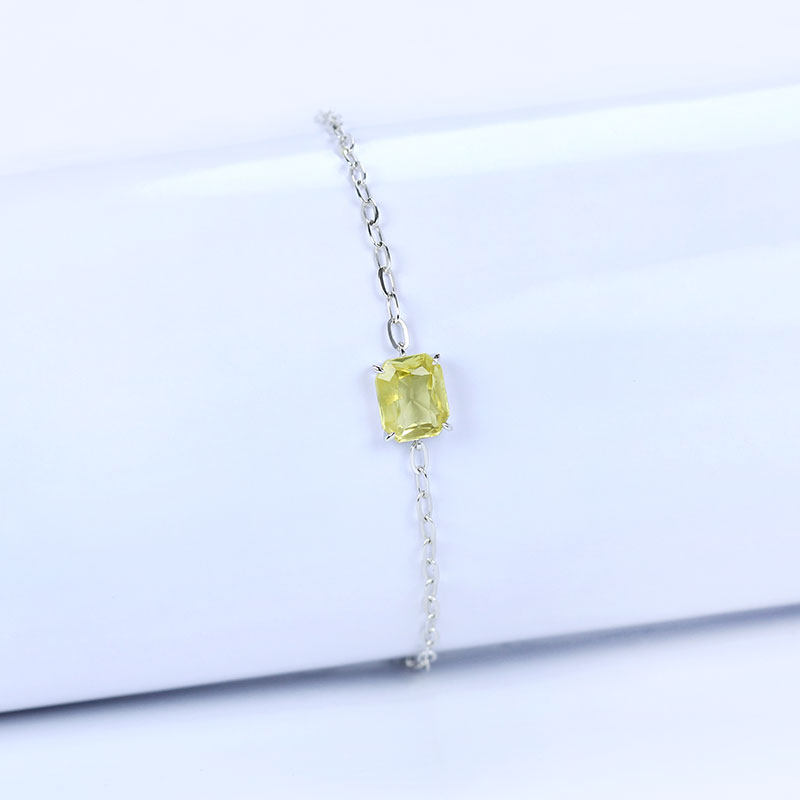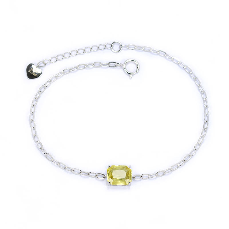 18K白金金丝雀无烧黄色蓝宝石长方形手链 天然女款简约四爪手饰