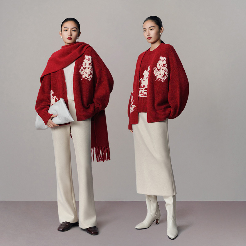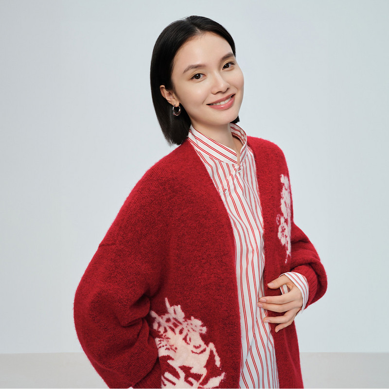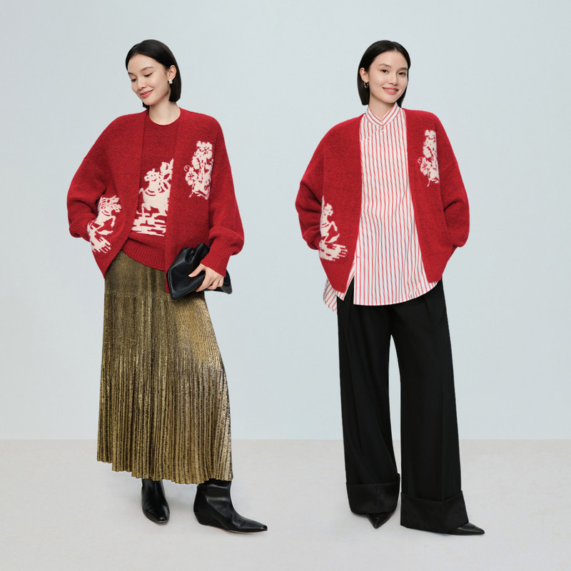 【马上有钱花开衫】naivee25冬含羊驼毛针织红色节日新年松弛风