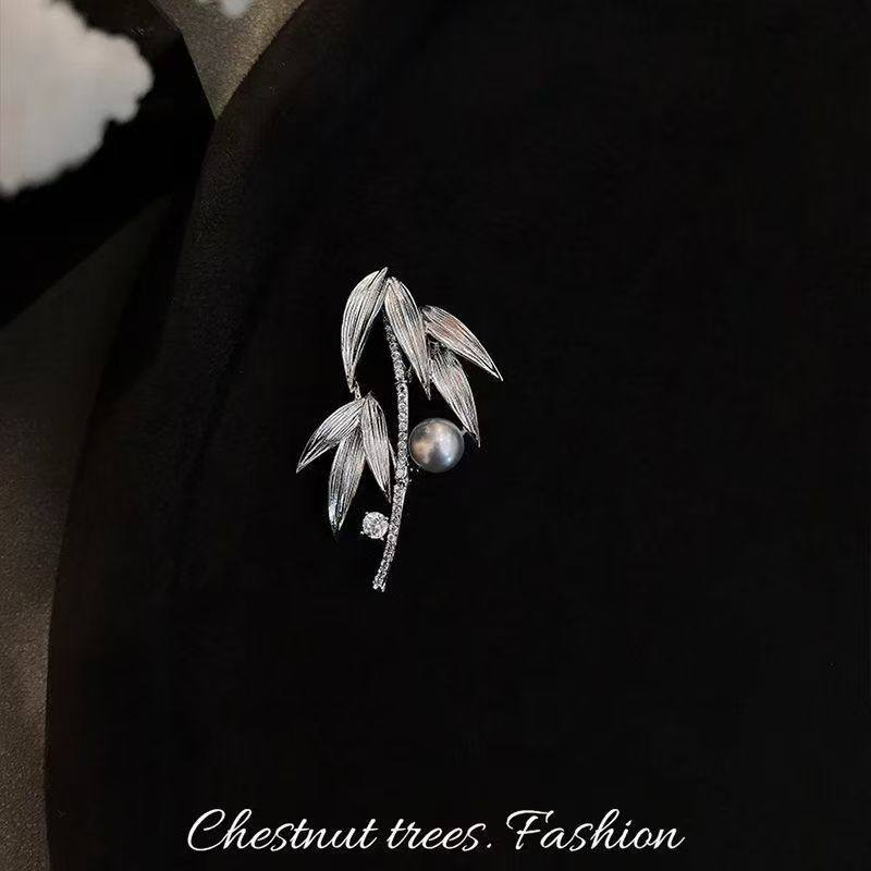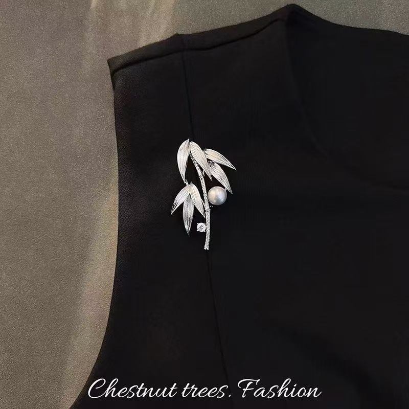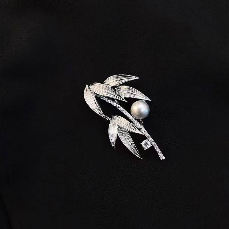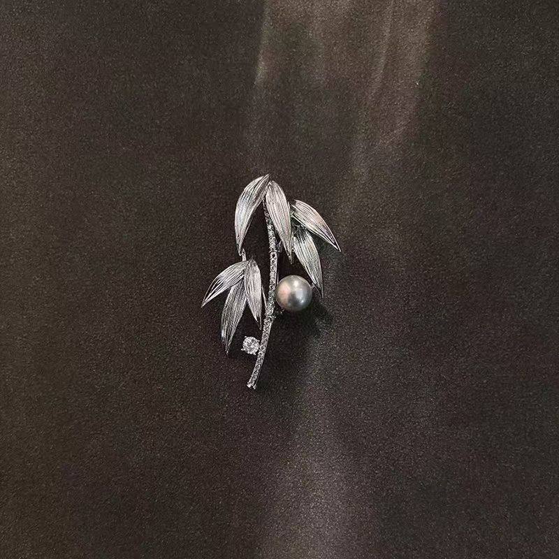 【银丝缠月·东方侘寂】新中式银色竹叶胸针女现代仕女风旗袍配饰