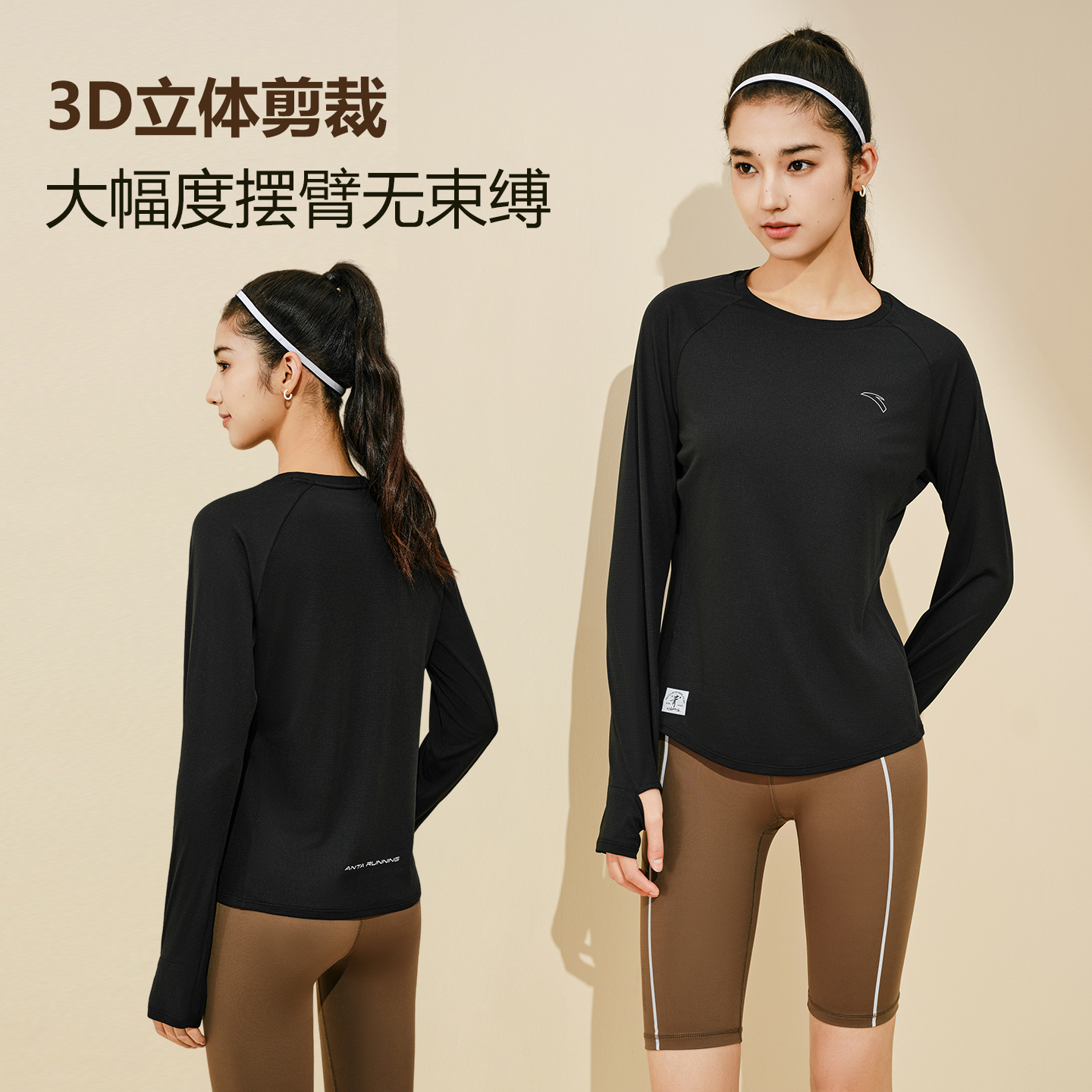 安踏跑步速干T丨透气吸汗跑步长袖t恤女冬季圆领瑜伽服羽毛球上衣