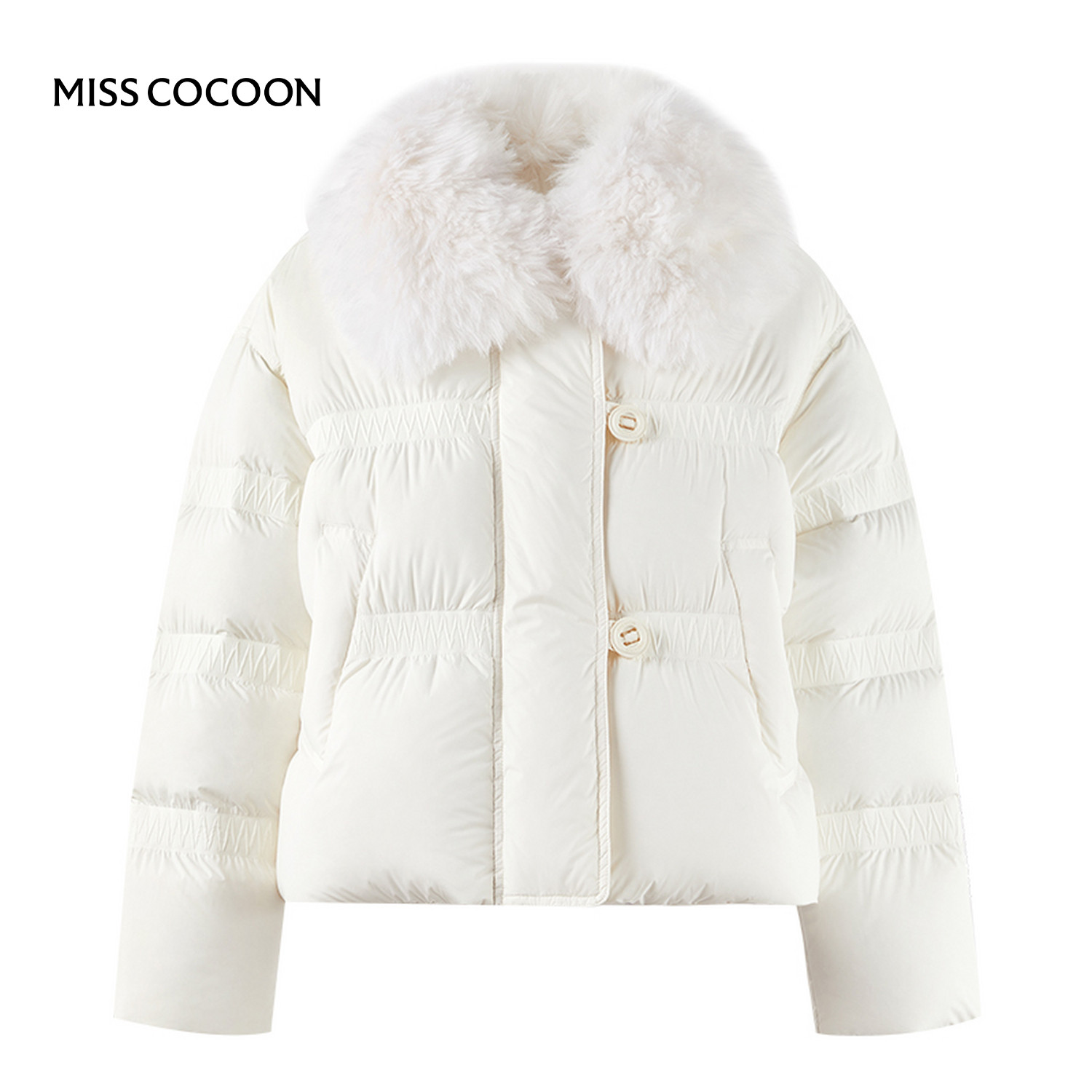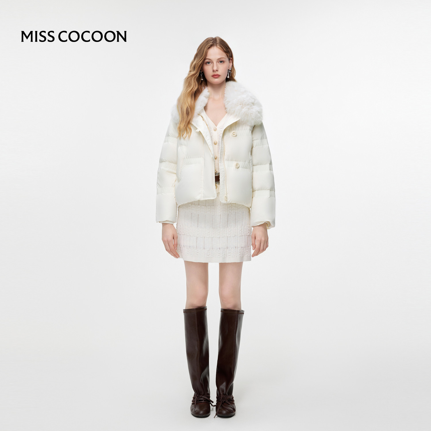 MISSCOCOON可可尼大毛领白色外套女2025冬季新款短款鸭绒羽绒服
