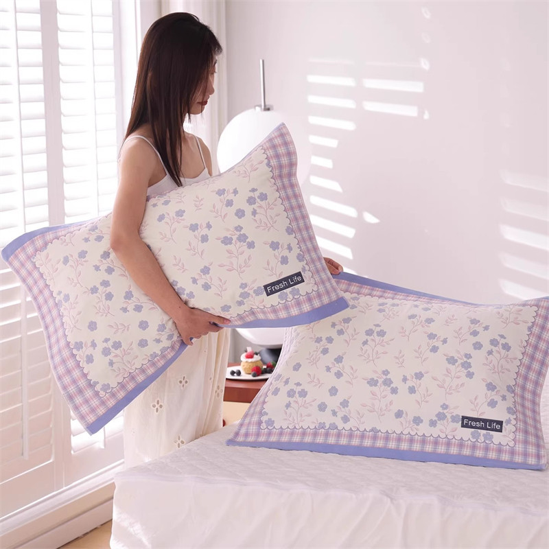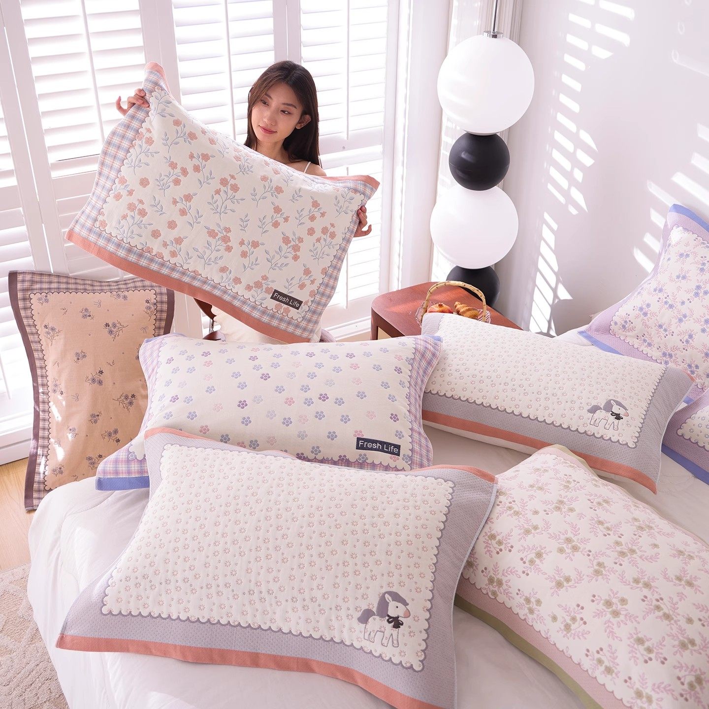 高密纯棉纱布枕巾一对装简约全棉柔软家用成人枕头巾吸汗透气盖巾