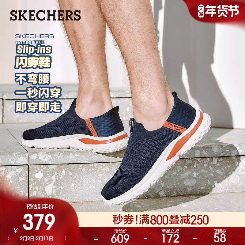 斯凯奇闪穿鞋春季新款男鞋一脚蹬健步鞋轻便舒适休闲运动鞋