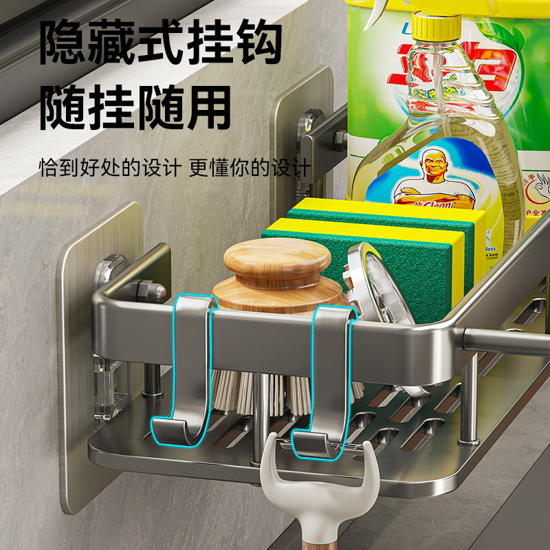 抹布架厨房收纳置物架壁挂式挂钩多功能家用沥水篮台面放置移动