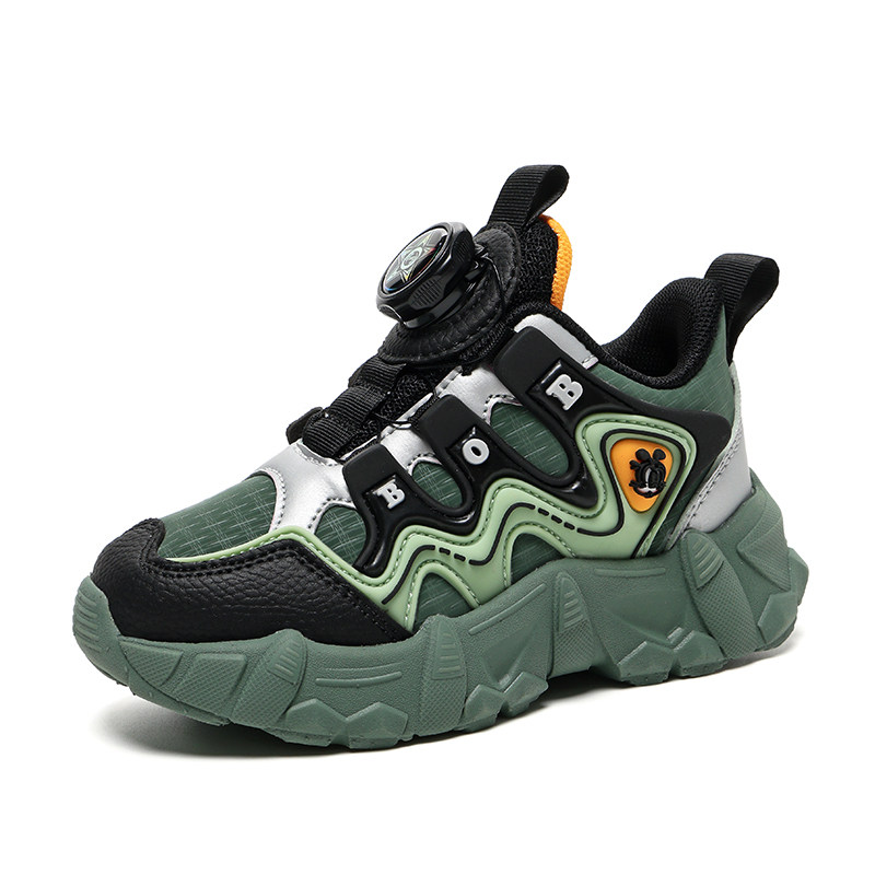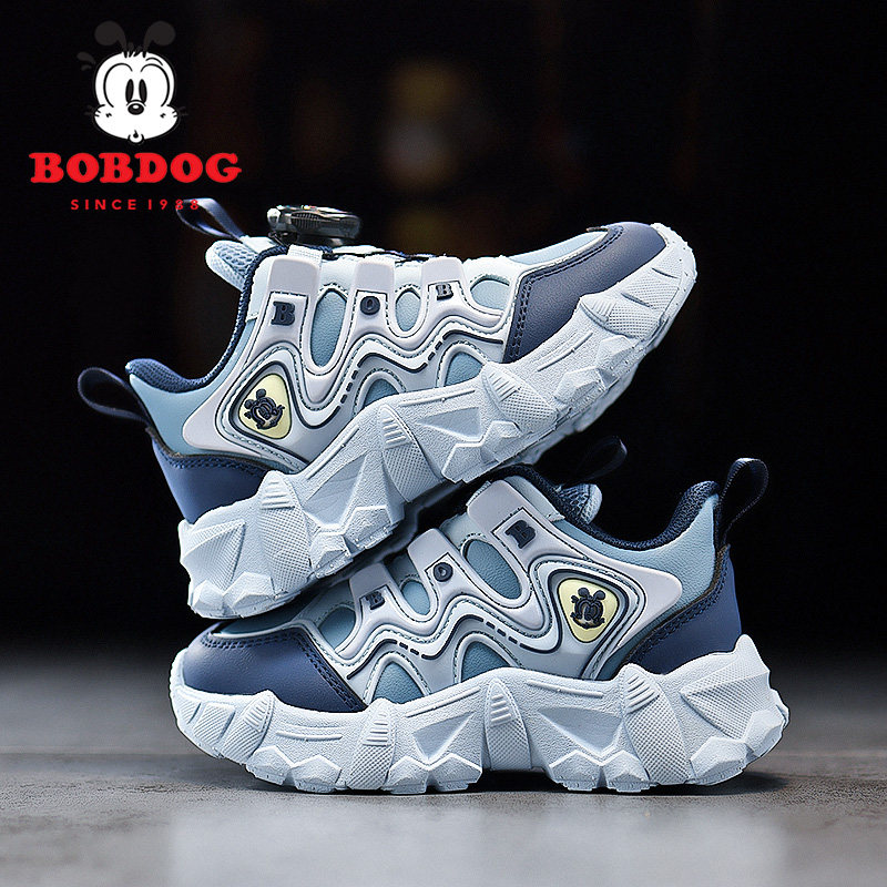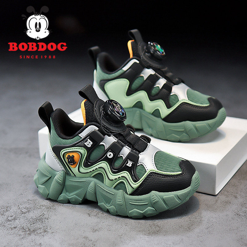 巴布豆男童运动鞋防水皮面2025秋冬新款旋转纽扣防滑软底儿童鞋子