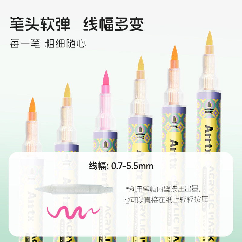 晨光图灵X直液式软头丙烯马克笔小学生美术画笔儿童幼儿园水彩笔
