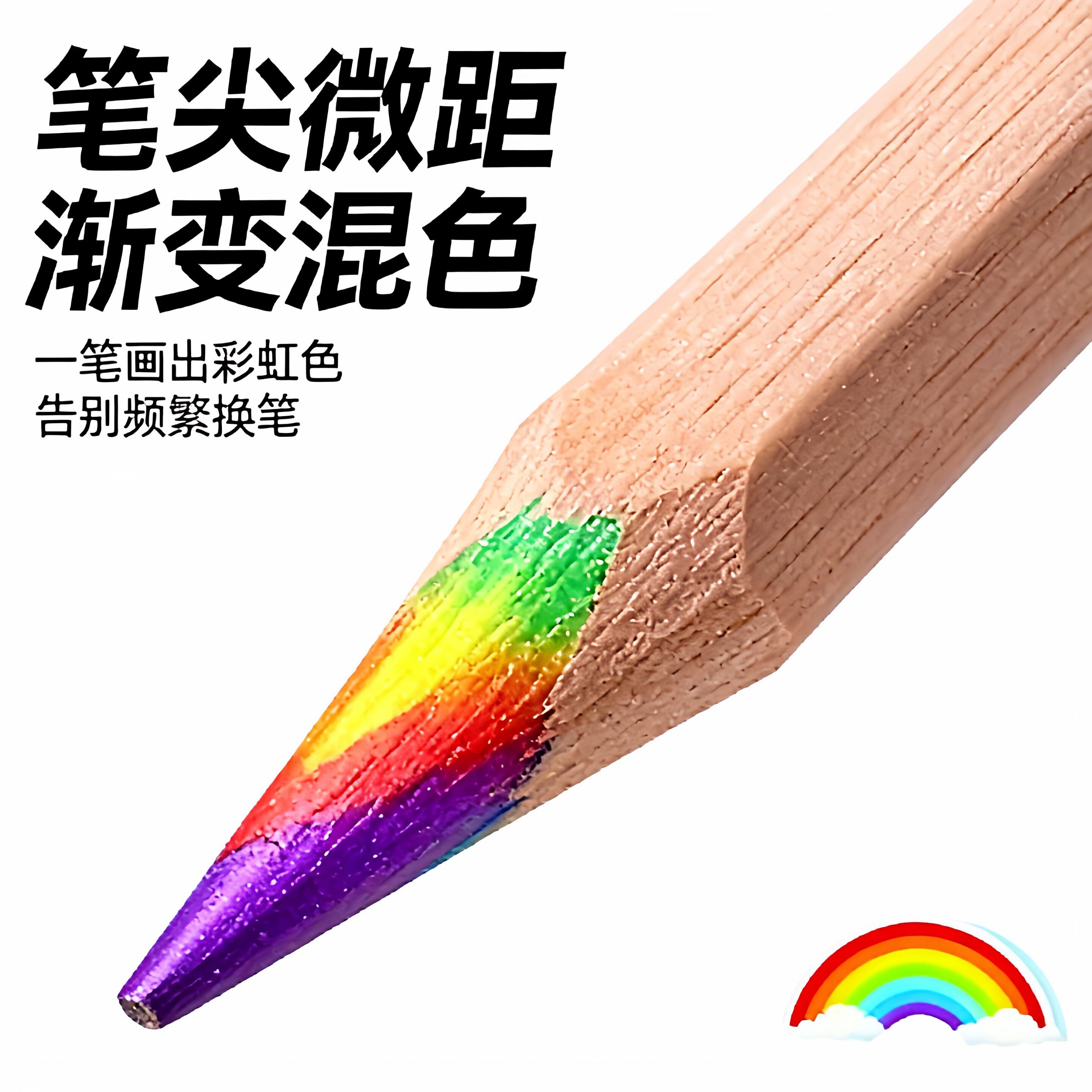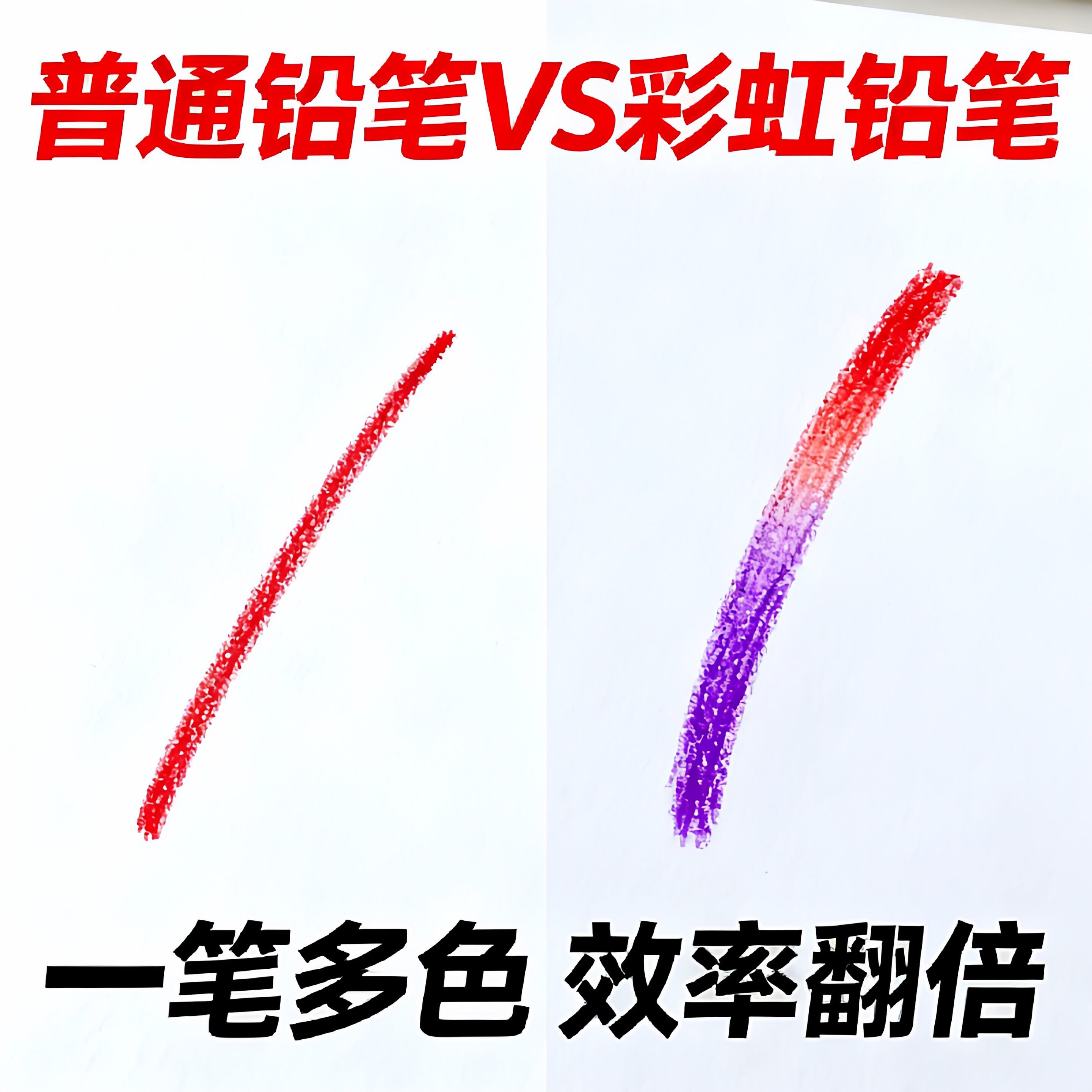 七色彩虹铅笔一笔多色铅笔彩虹笔渐变色彩混色彩铅笔手绘儿童画笔