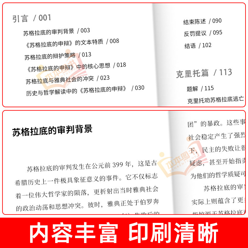 苏格拉底的申辩 哲学经典智慧辩驳真理追求思想自由书籍读懂柏拉图的西方哲学史历史文学哲学思想名人语录