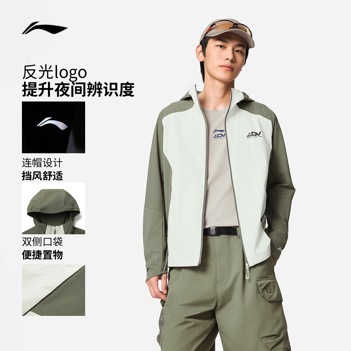 李宁外套男新款跑步训练开衫长袖茄克连帽软壳风衣梭织反光运动服