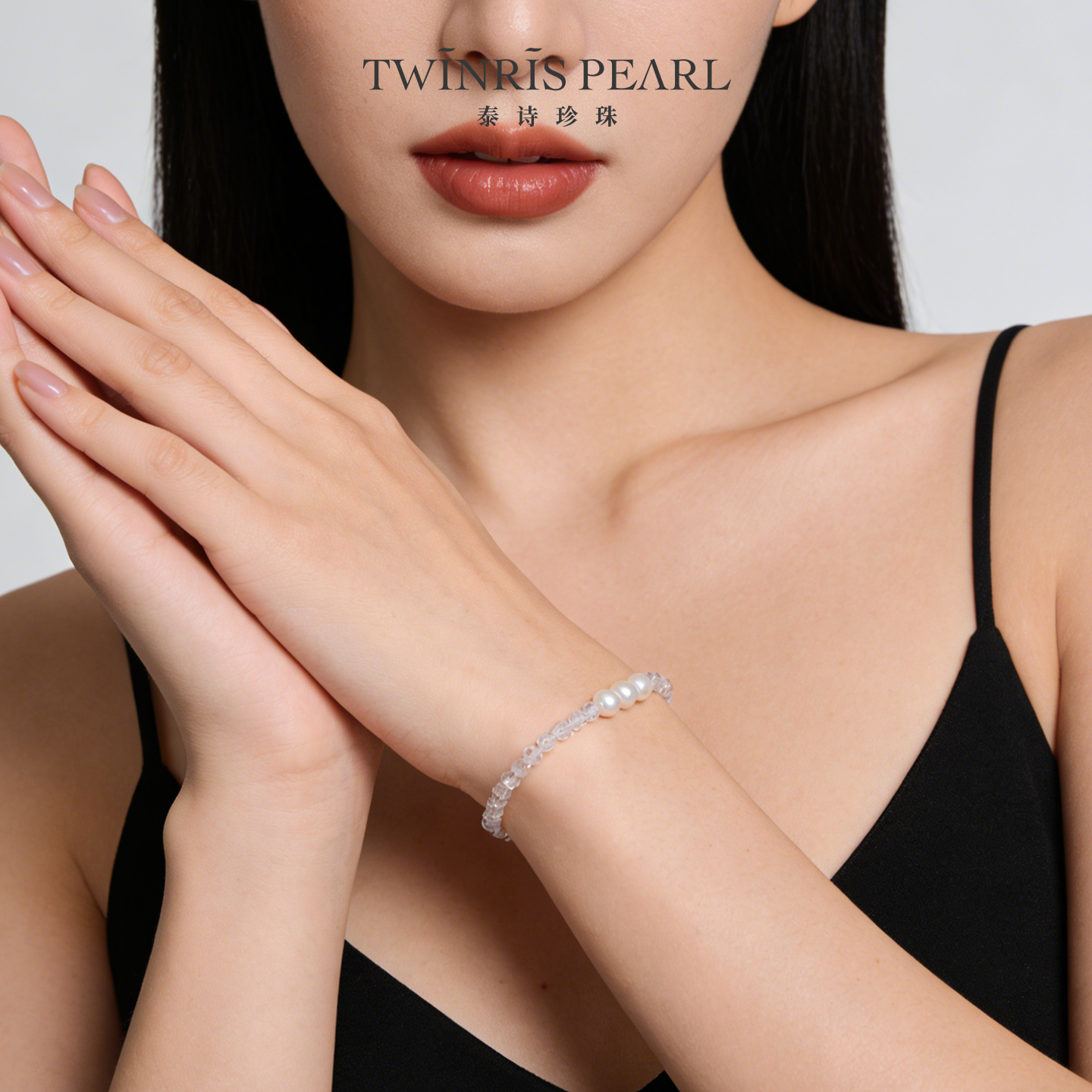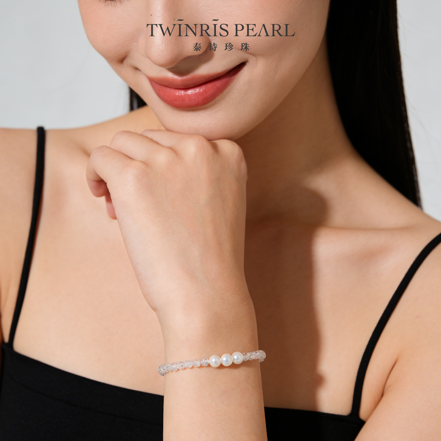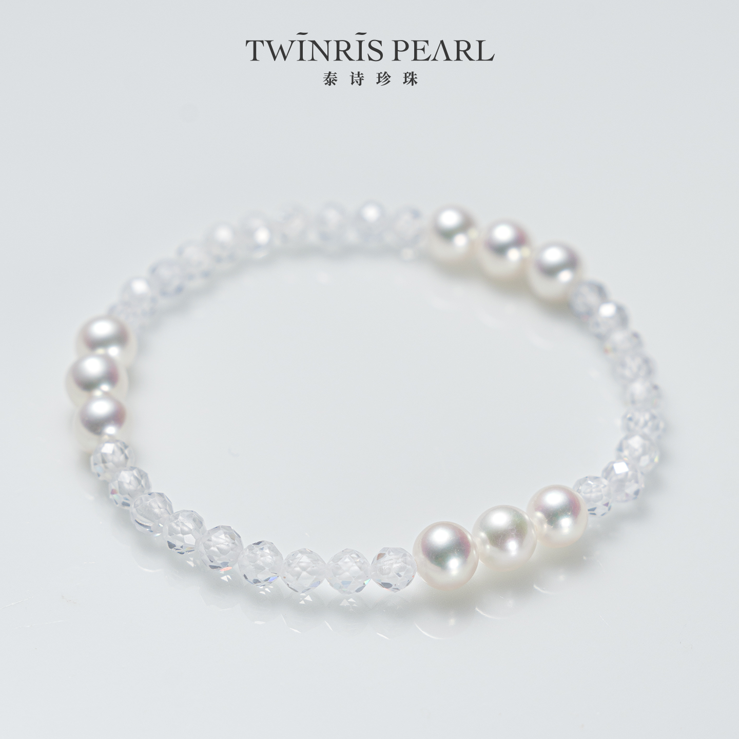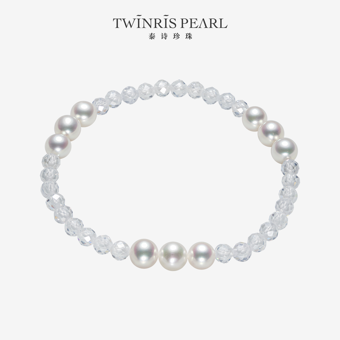 泰诗珍珠奥地利白水晶淡水手链时尚简约珠宝精致首饰正圆多层