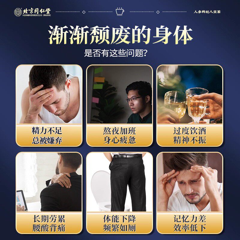同仁堂人参枸杞玛咖黄精肉苁蓉杜仲八宝茶男人熬夜补精强肾养生茶