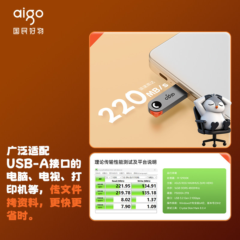 高速USB3.2 GEN1 读速达220MB/S 3年质保