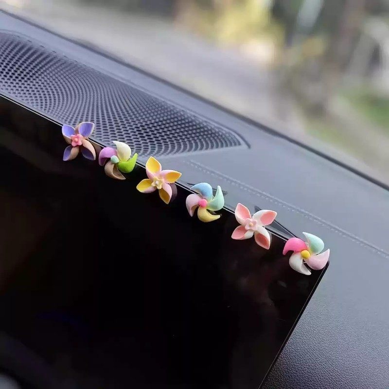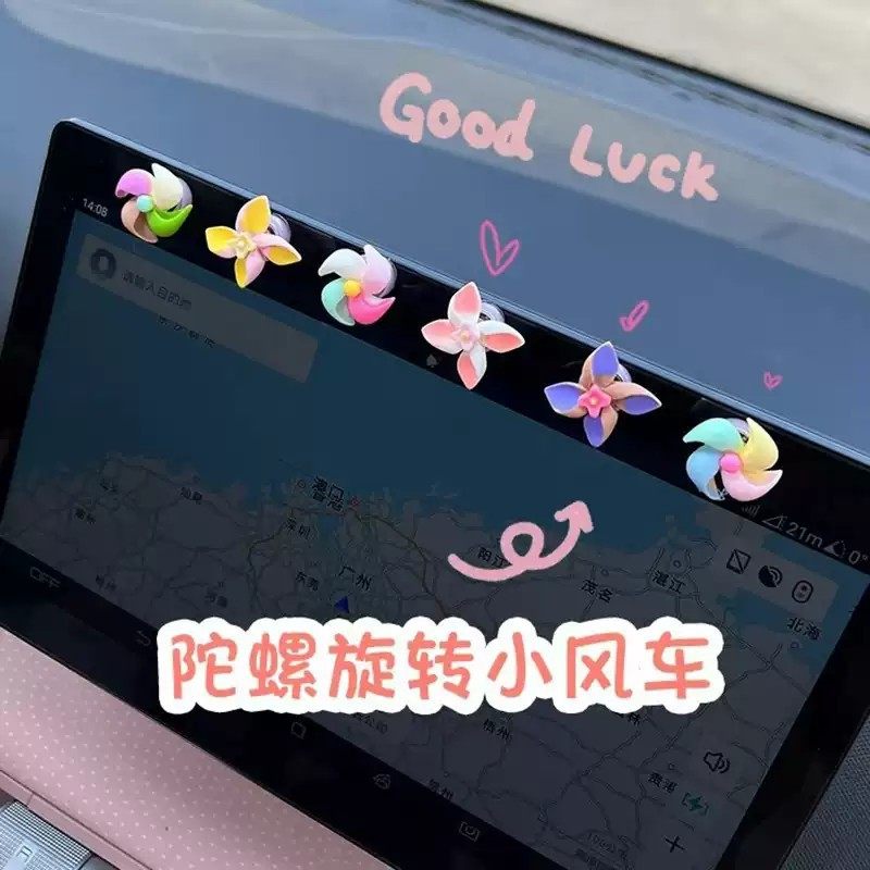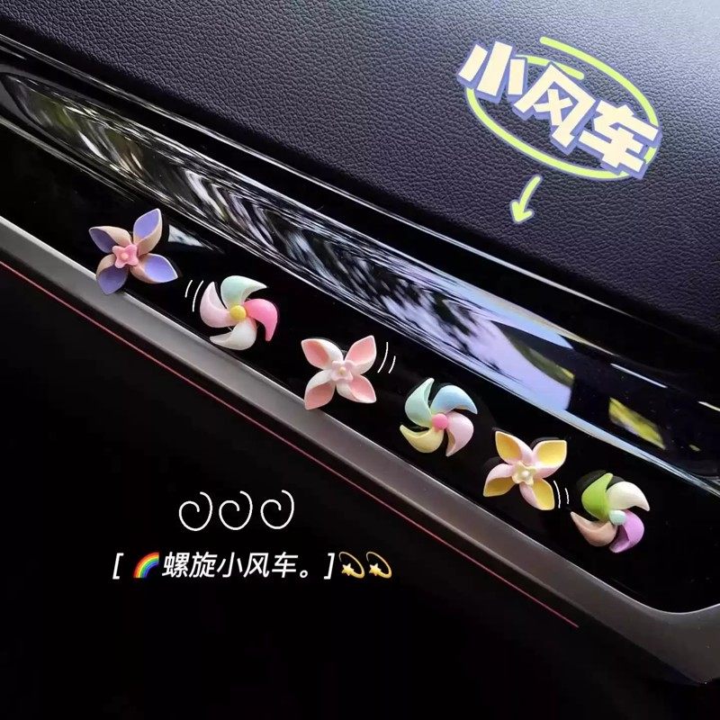 车载新款小风车旋转陀螺创意装饰贴小摆件中控台车内饰品女士可爱