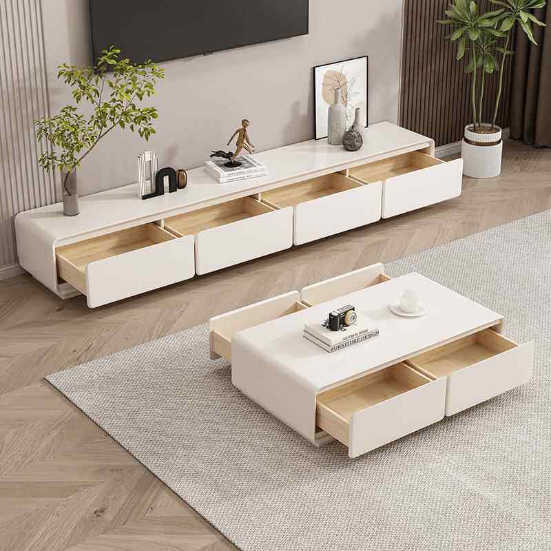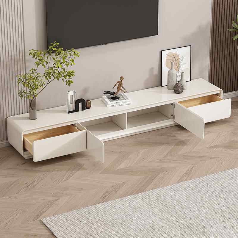 麦比梵实木电视柜客厅2025新款奶油白圆角落地整装靠墙矮柜小户型简约摆件饰品床笠拉车
