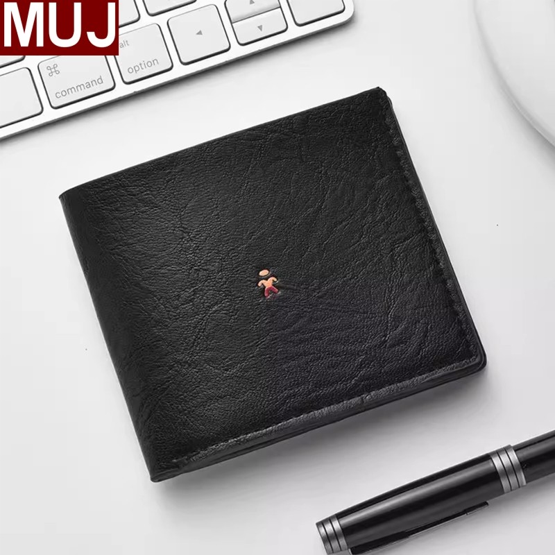 日本无印MUJ轻奢男钱包短款大容量新款轻薄多卡位卡包一体零钱包