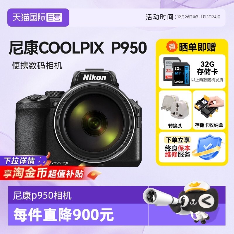 【自营】尼康 COOLPIX P950 数码相机演唱会超长焦4K打鸟海外版