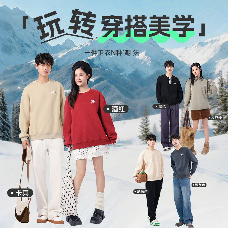 班尼路重磅卫衣男款秋季基础纯色圆领内搭男款宽松大码正肩套头衫