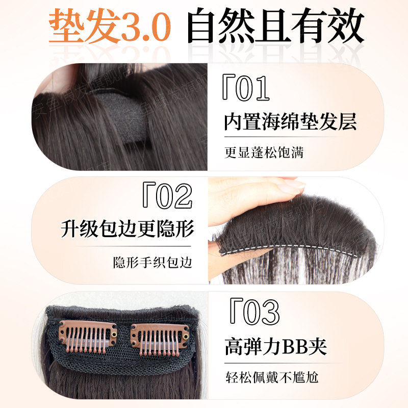 假发片增发量蓬松无痕高颅顶垫发片手织包边后脑勺扁头神器垫发片